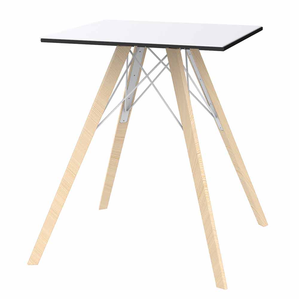 Mesa de jantar quadrada em madeira de freixo e tampo em hpl branco ou preto e 3 tamanhos, 4 peças.