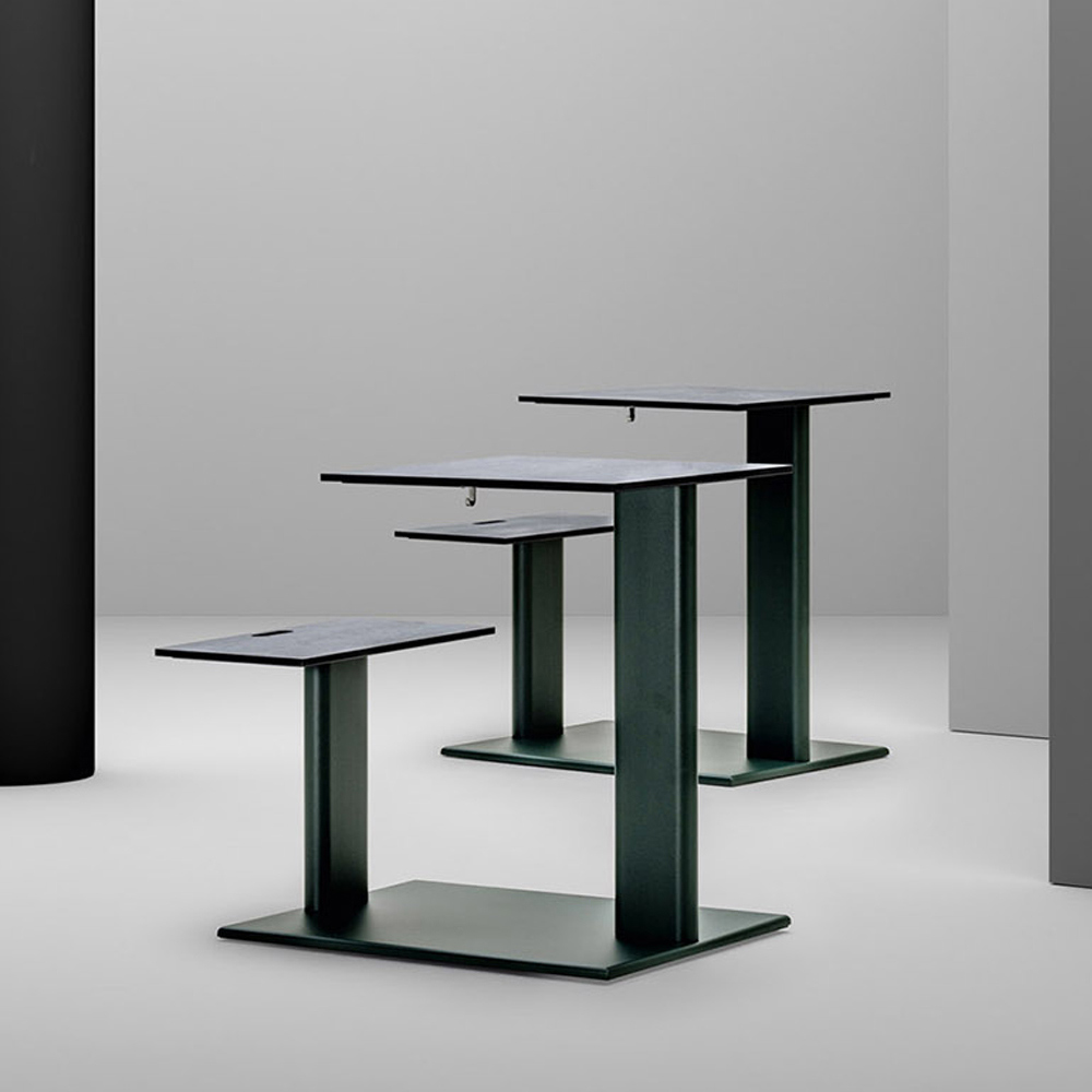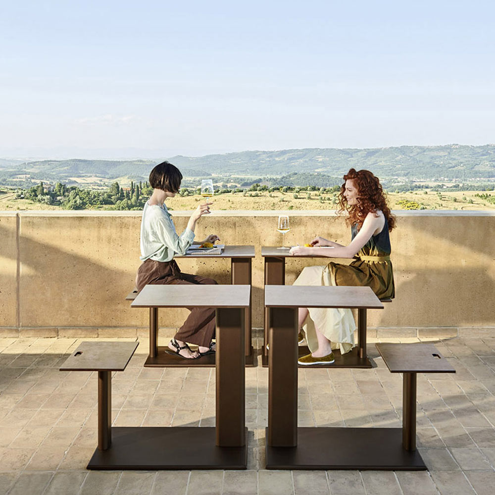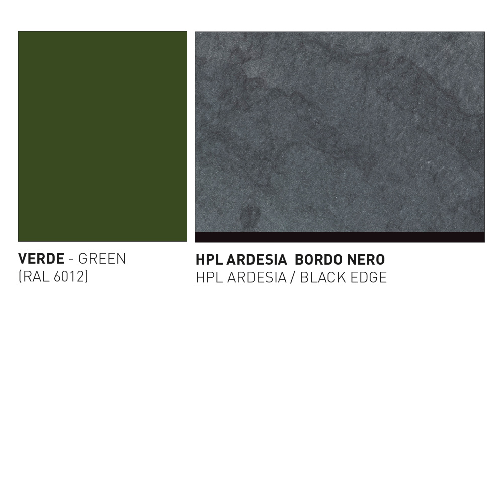 Mesa com assento articulado em alumínio e tampo em HPL colorido Made in Italy.