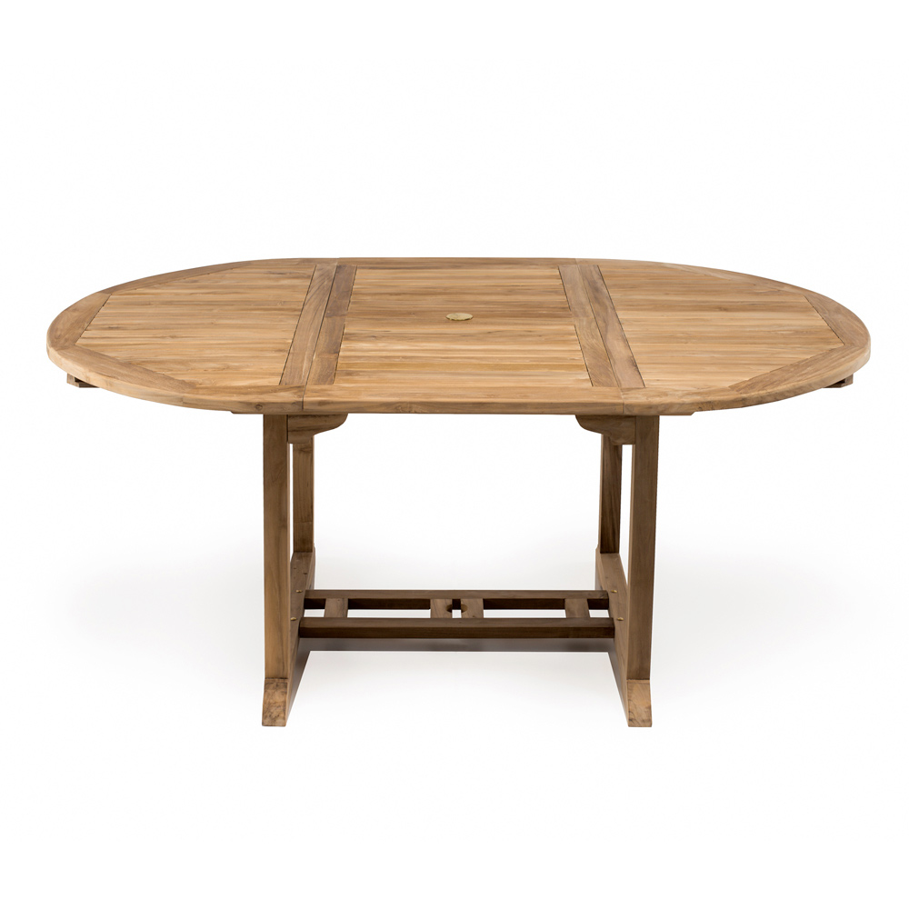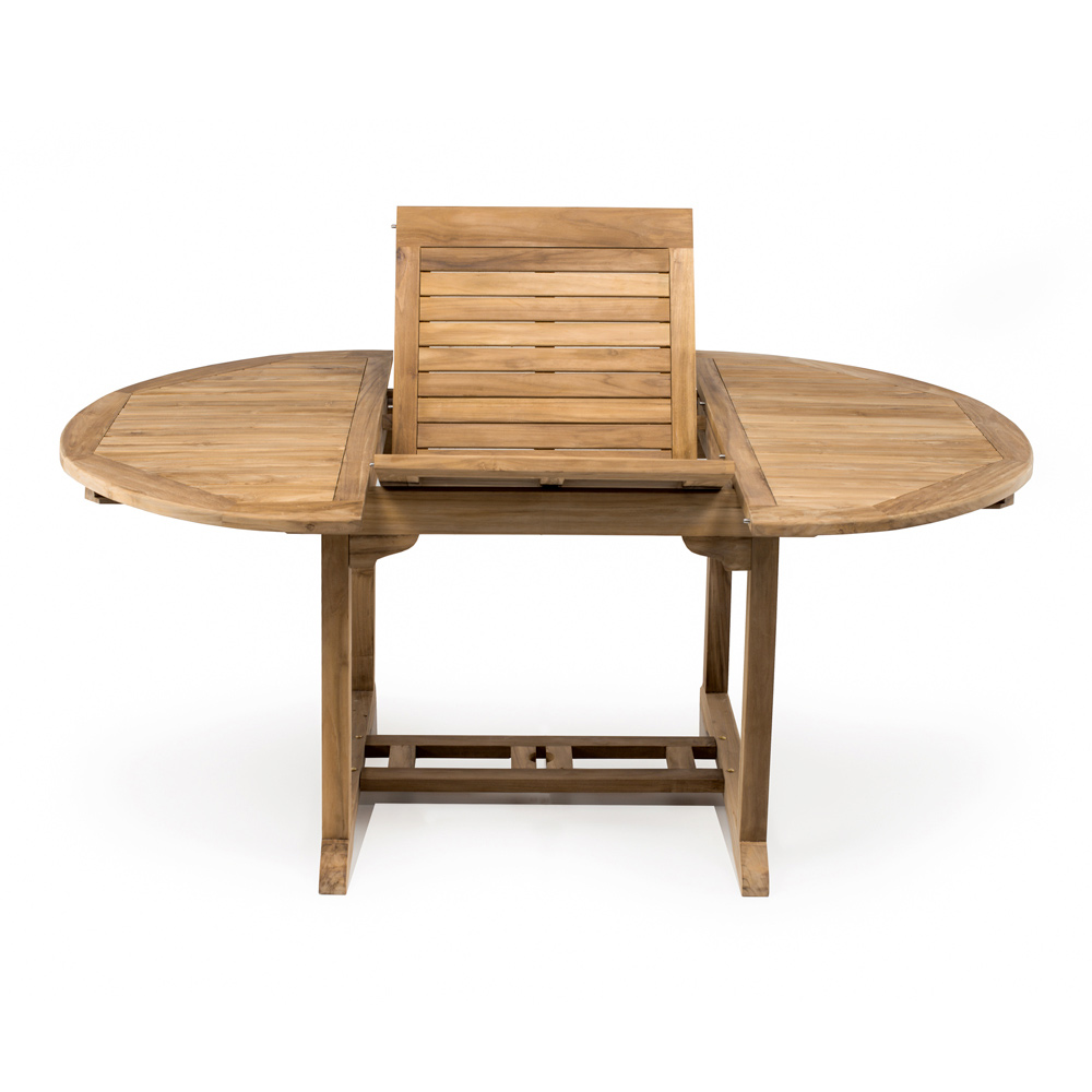Mesa extensível para área externa feita de madeira de teca natural . A madeira de teca utilizada é de origem indonésia , proveniente de florestas controladas e sustentáveis (MADEIRA LEGAL DA INDONÉSIA). É um material extremamente durável e estável, resistente a agentes atmosféricos, fungos, pragas e insetos. Contém altos níveis de óleos naturais que o tornam resistente e limitam a absorção de umidade .