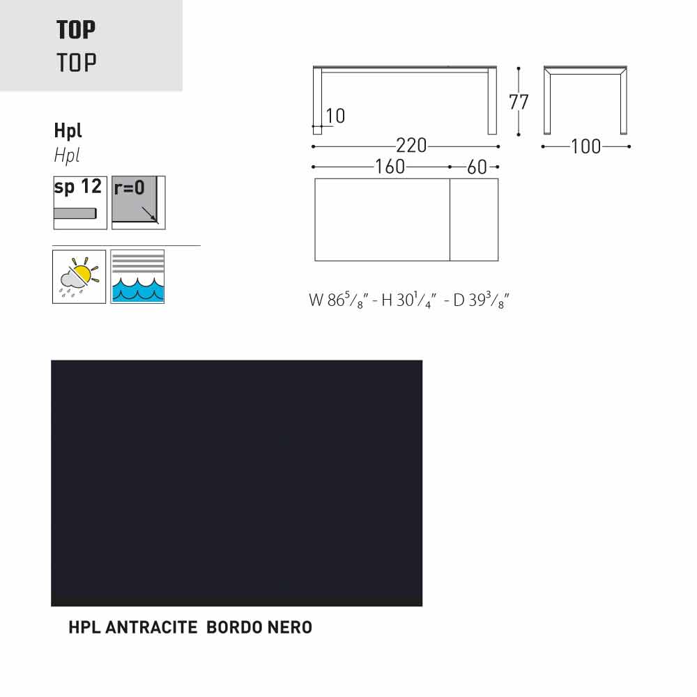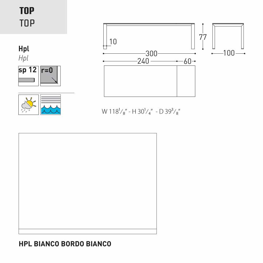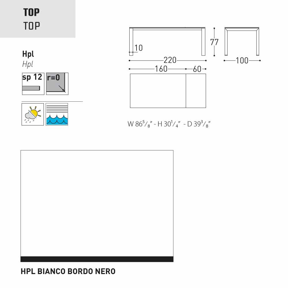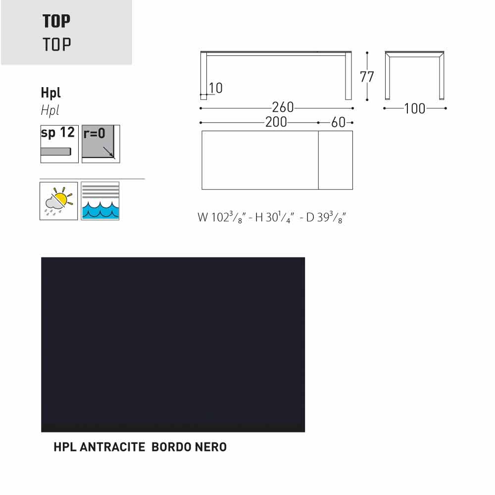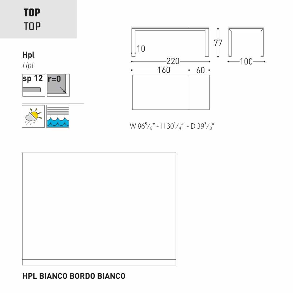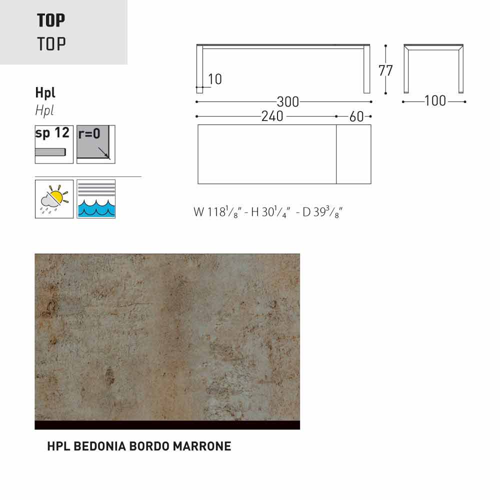 Recursos técnicos HPL : Laminados de alta pressão. Eles são feitos de várias camadas de papel (70%) impregnadas com resinas termofixas (30%) e compactadas por cerca de 45-50 minutos através da ação combinada de calor (a cerca de 150 graus) e alta pressão (superior a 7 MPa / Megapascal por metro quadrado.) O resultado é um produto estável, não reativo, não poroso e de alta densidade. Possui características físicas e químicas de alta resistência mecânica (excursão de temperatura controlada + 80 / -40 graus, por menos de 30 segundos em temperaturas extremas). Resiste à exposição à luz e variações de temperatura, mesmo em ambientes marinhos.