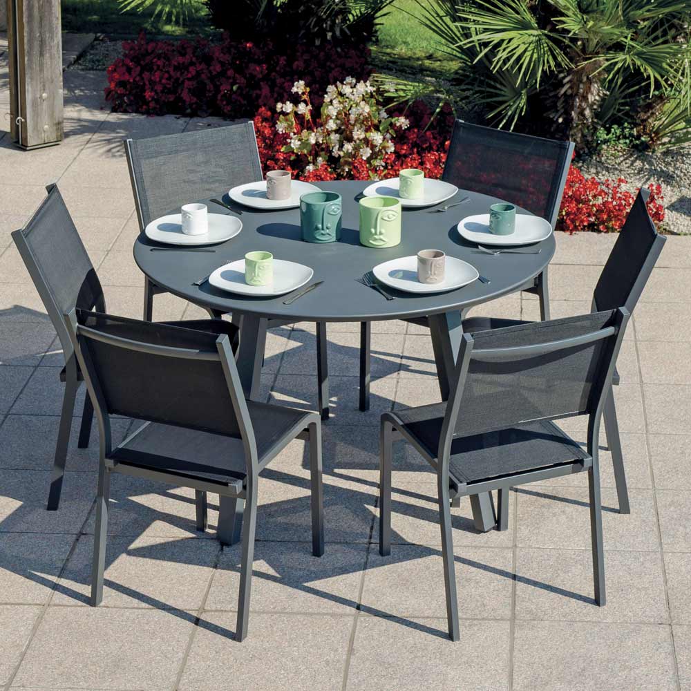 Esta mesa redonda é a combinação perfeita de design moderno e funcionalidade , ideal para mobiliar com elegância qualquer espaço exterior. Com 120 cm de diâmetro , oferece uma superfície ampla e convidativa, perfeita para almoços, aperitivos ou momentos de relaxamento ao ar livre.
