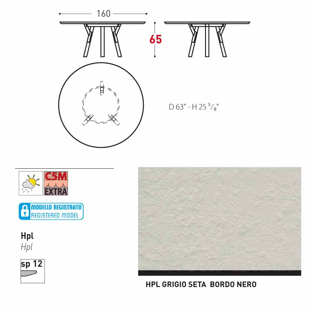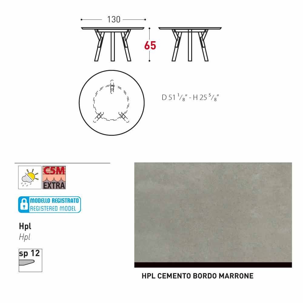 Recursos técnicos HPL : Laminados de alta pressão. Eles são feitos de várias camadas de papel (70%) impregnadas com resinas termofixas (30%) e compactadas por cerca de 45-50 minutos através da ação combinada de calor (a cerca de 150 graus) e alta pressão (superior a 7 MPa / Megapascal por metro quadrado.) O resultado é um produto estável, não reativo, não poroso e de alta densidade. Possui características físicas e químicas de alta resistência mecânica (excursão de temperatura controlada + 80 / -40 graus, por menos de 30 segundos em temperaturas extremas). Resiste à exposição à luz e variações de temperatura, mesmo em ambientes marinhos.