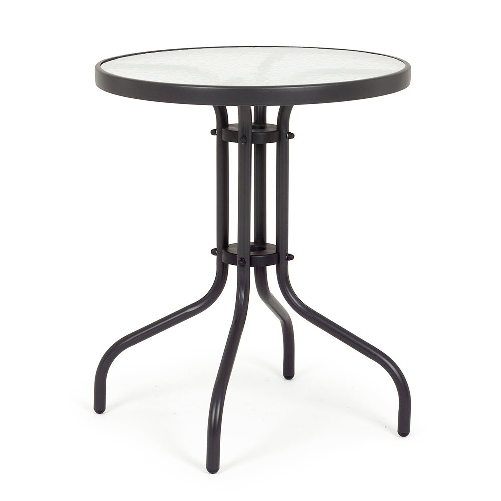 Mesa de jardim redonda em aço com tampo de vidro design - Purizia