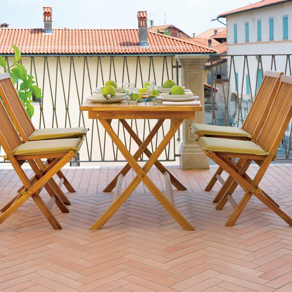 A teca é classificada como a madeira mais valiosa disponível para móveis de exterior. É extremamente durável, estável, resistente a agentes atmosféricos, fungos, ataques de parasitas e insetos. Contém altos níveis de óleos naturais que o tornam resistente e limitam a absorção de umidade. Com o tempo, os móveis de teca expostos ao sol, chuva, umidade, etc. geralmente tendem a adquirir uma cor cinza prateada: isso se deve a um processo de oxidação superficial que protege naturalmente a madeira. Este processo é puramente estético e não prejudica a estrutura nem a qualidade da madeira. O aparecimento de óleo na superfície dos móveis de teca é um processo natural: o óleo pode vazar durante os primeiros meses, de forma mais ou menos consistente dependendo do ambiente em que o móvel é colocado. Os óleos naturais encontrados na teca são o que a torna a melhor madeira para móveis de exterior.