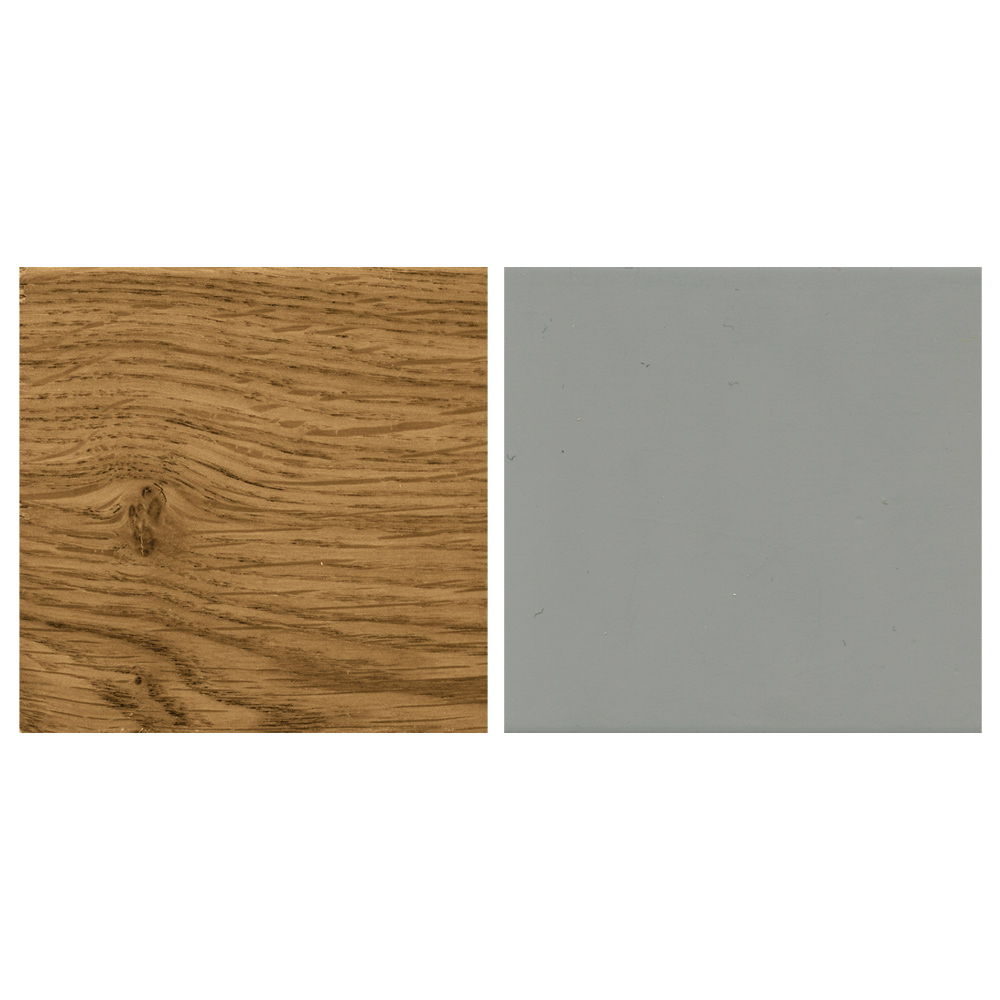 em bloco de carvalho maciço com nós com acabamento em carvalho com nós country e parte inferior em cor ardósia. A base original em contraplacado curvo de carvalho é composta por dois elementos curvos e sinuosos, que sustentam o importante tampo, recriando um perfeito equilíbrio de formas.