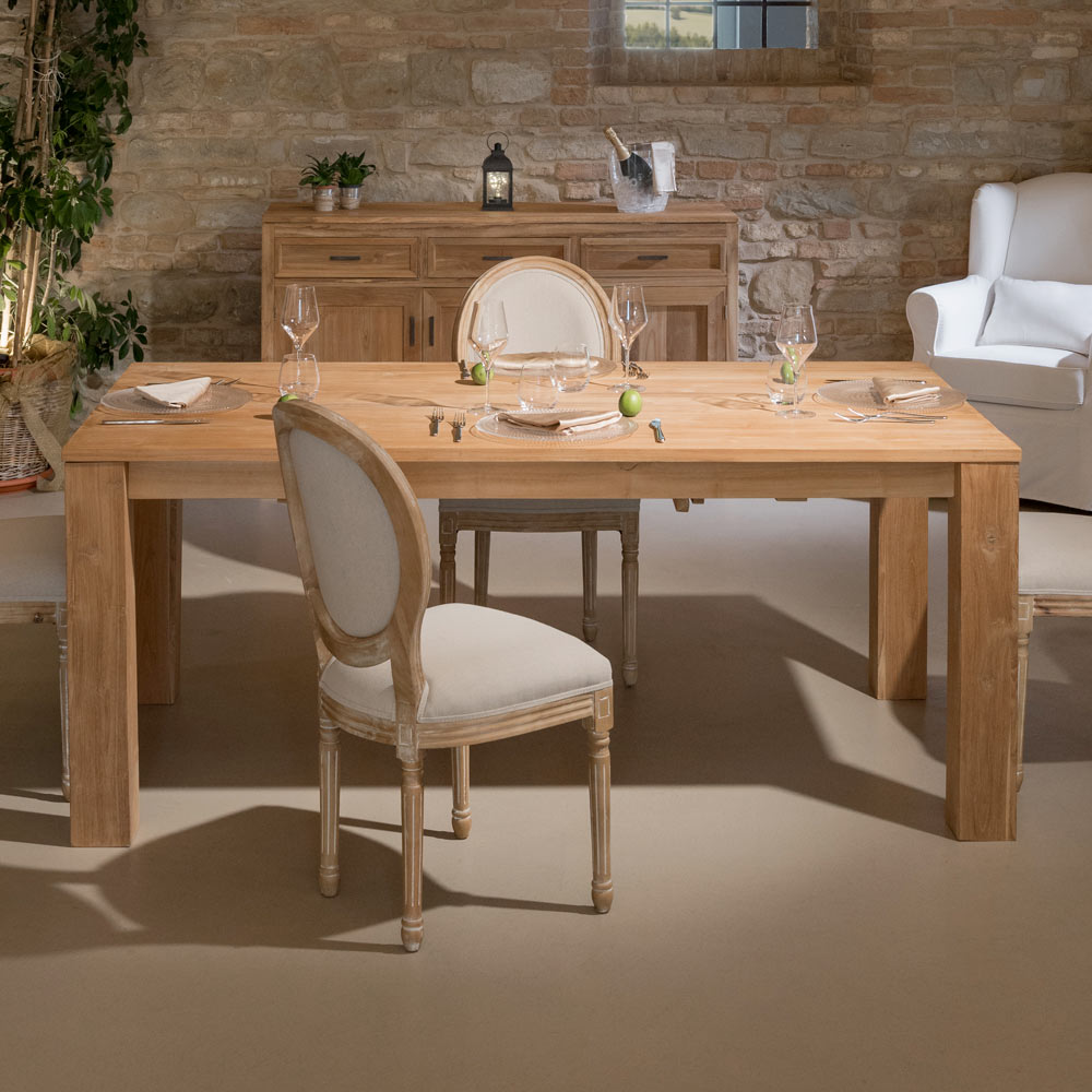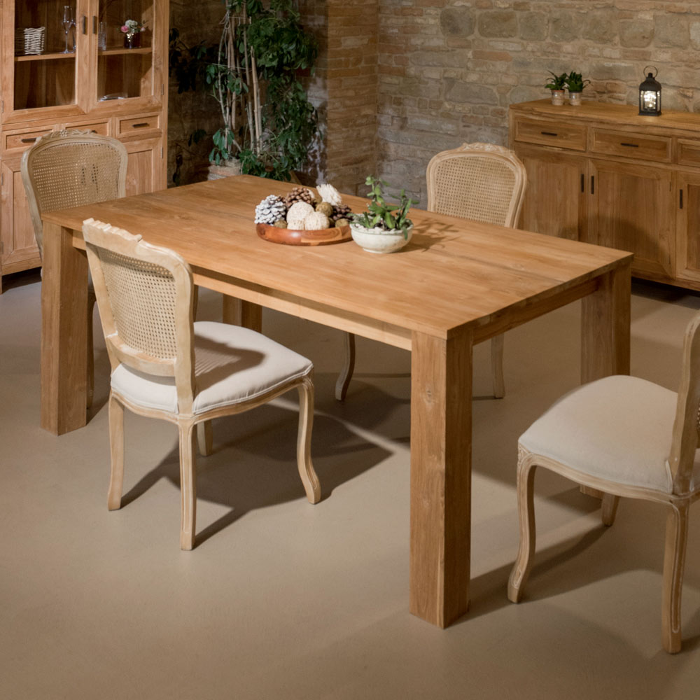Esta mesa fixa em madeira maciça de teca é uma peça robusta e elegante, ideal para adicionar estilo à sua sala de jantar ou cozinha. A estrutura sólida e o acabamento impecável realçam os veios naturais da madeira , criando uma atmosfera acolhedora e convidativa.