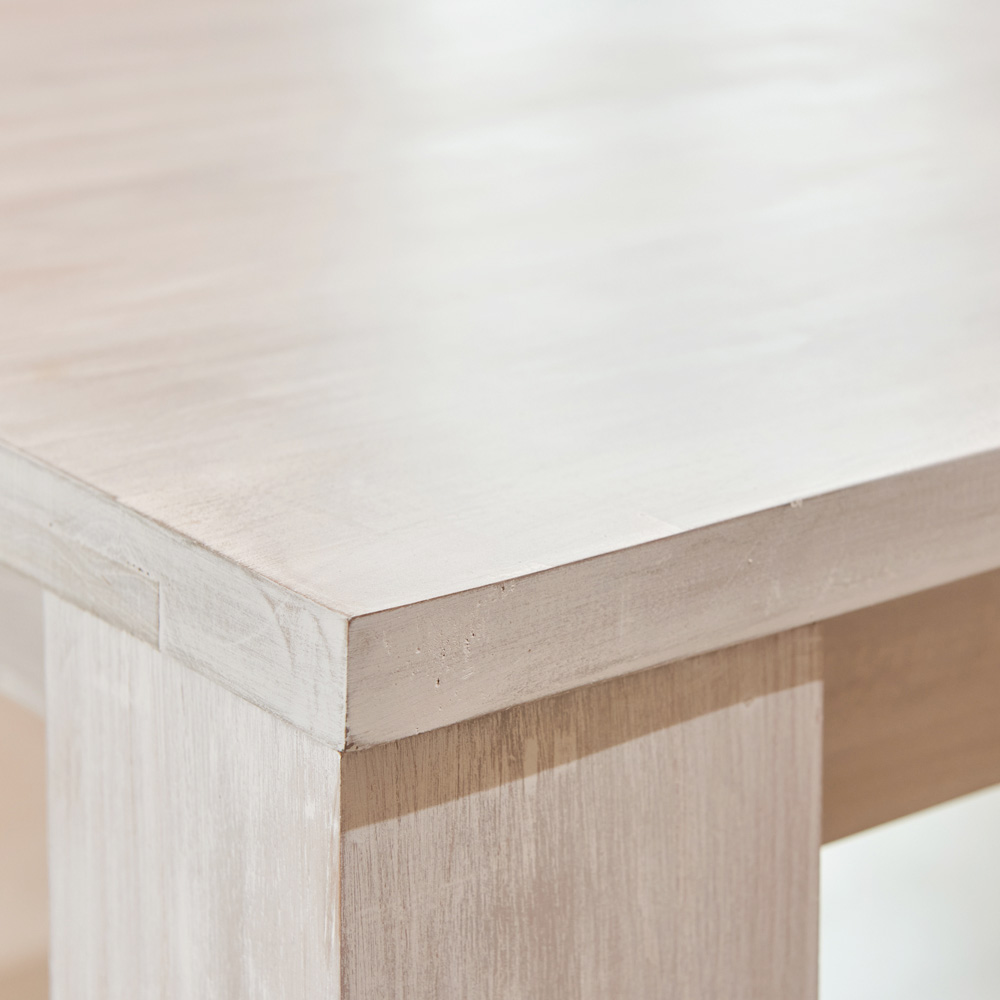 A mesa é feita à mão com madeira naturalmente seca, um material vivo que pode sofrer movimentos naturais ao longo do tempo. Quaisquer pequenas rachaduras ou imperfeições são inerentes à madeira e podem surgir com o tempo.