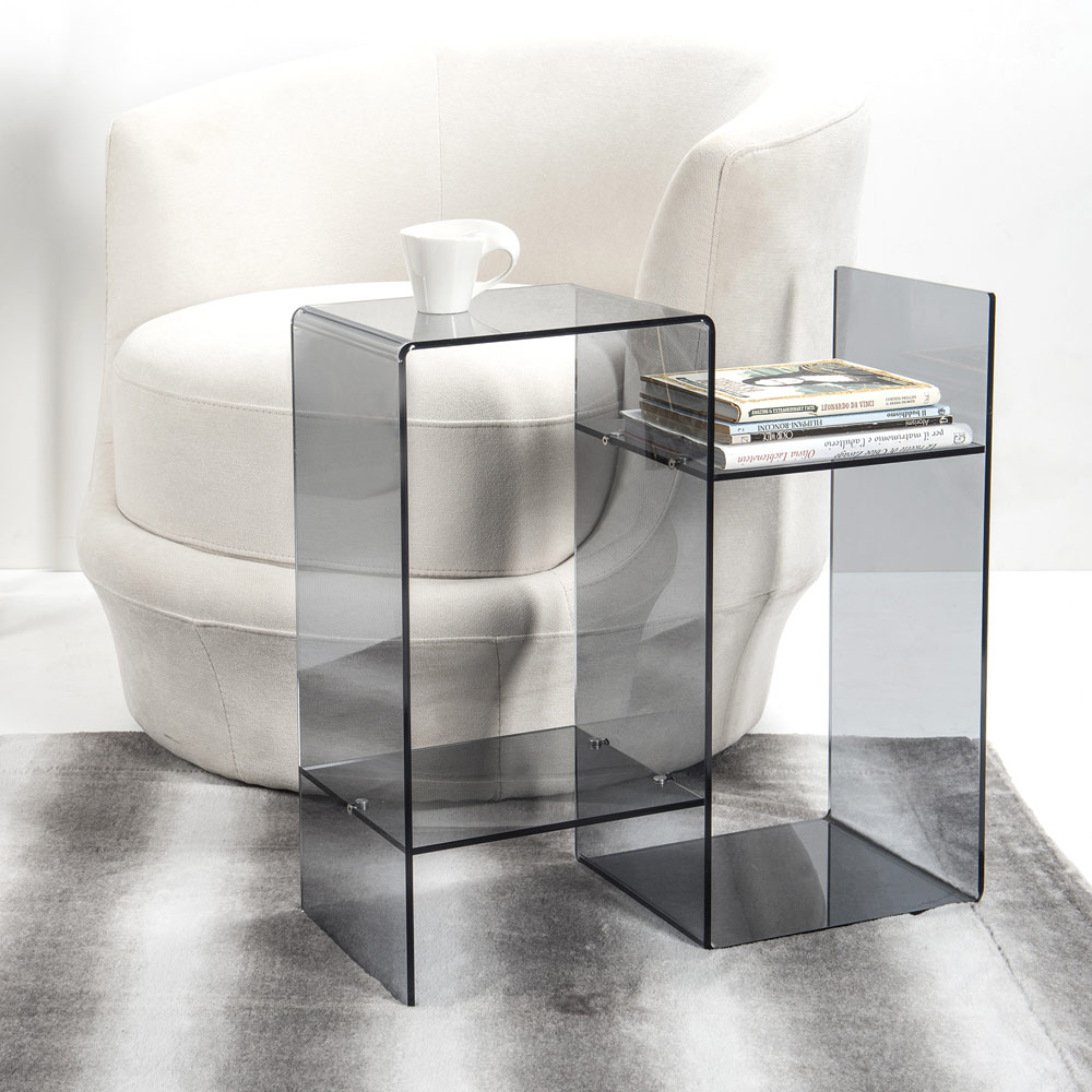 Mesa de centro para sofá em plexiglass transparente ou fumê Fabricado na Itália.