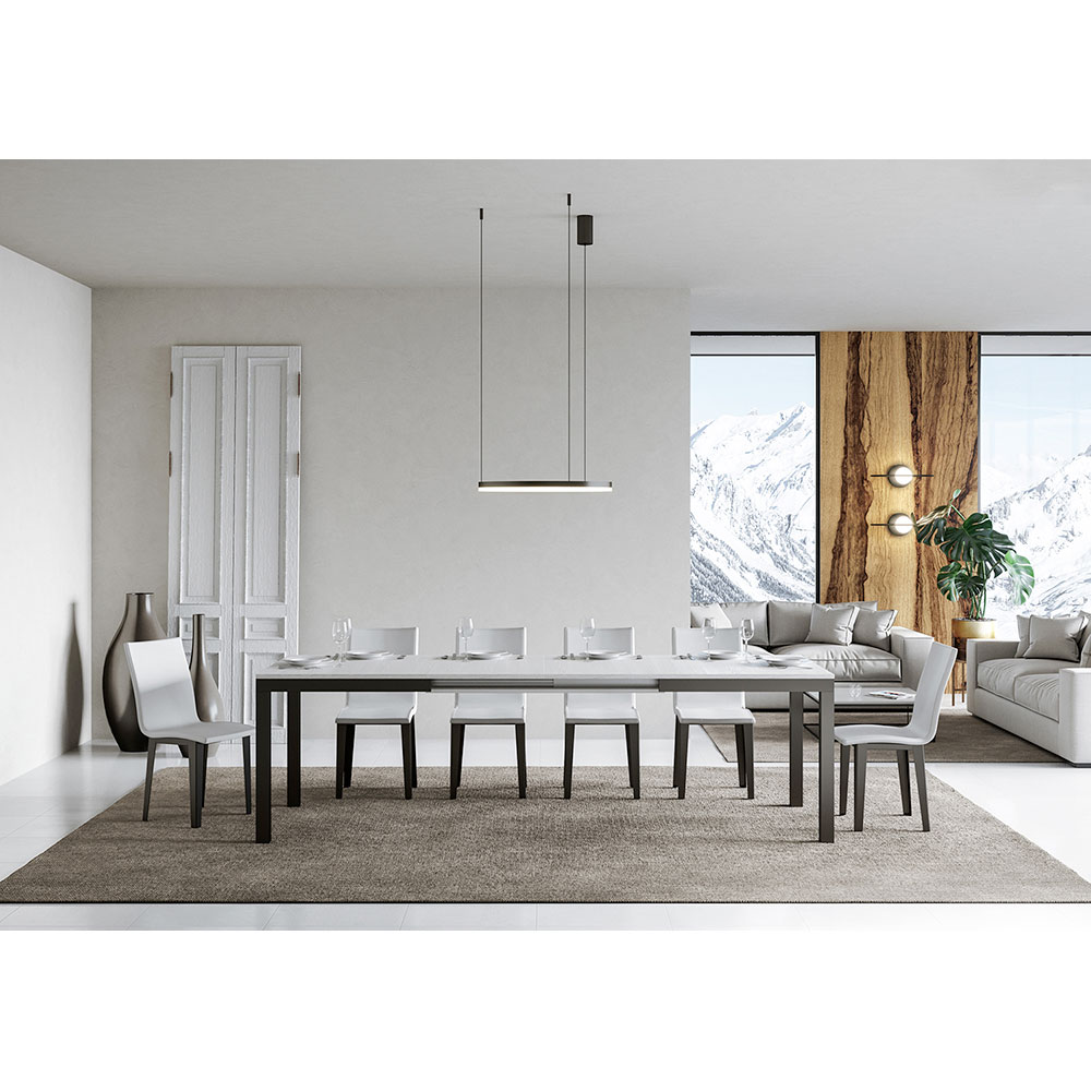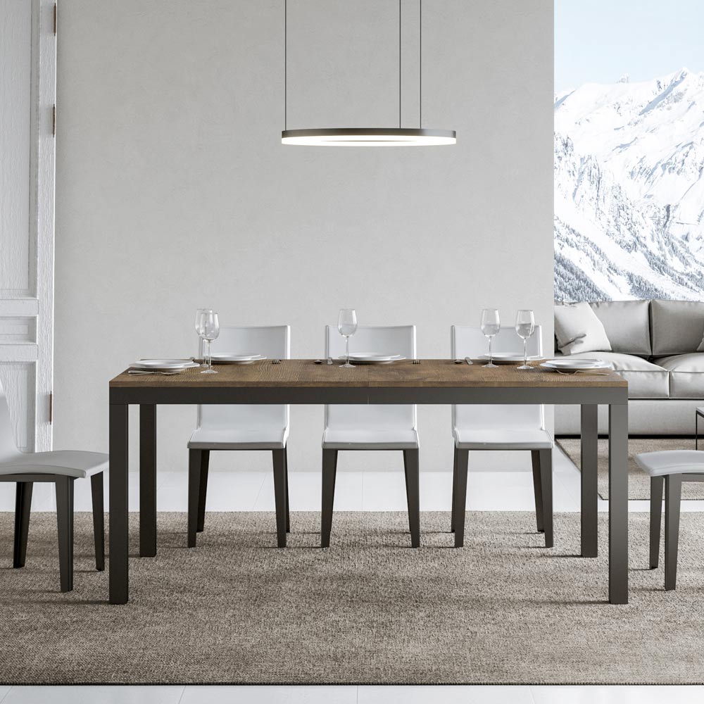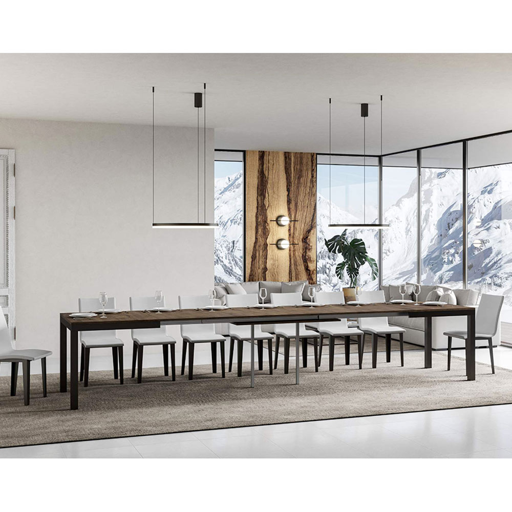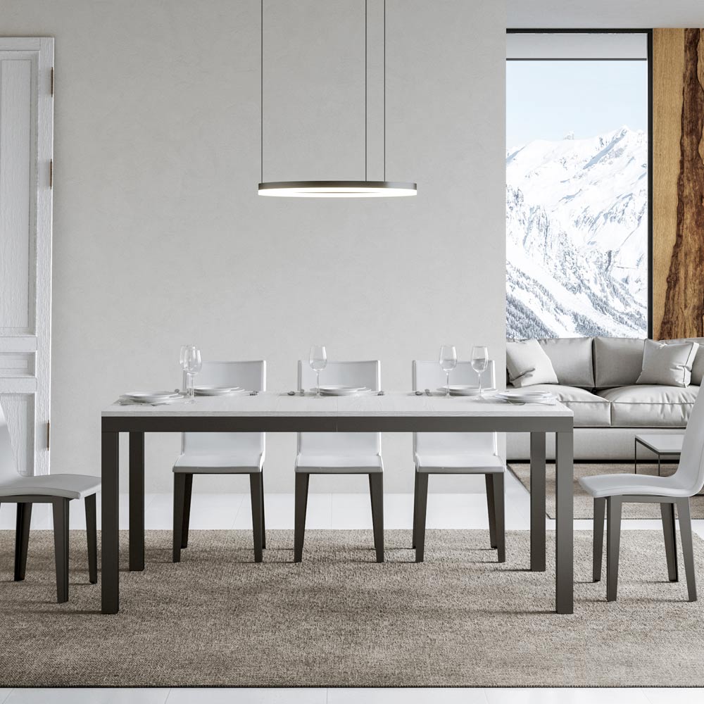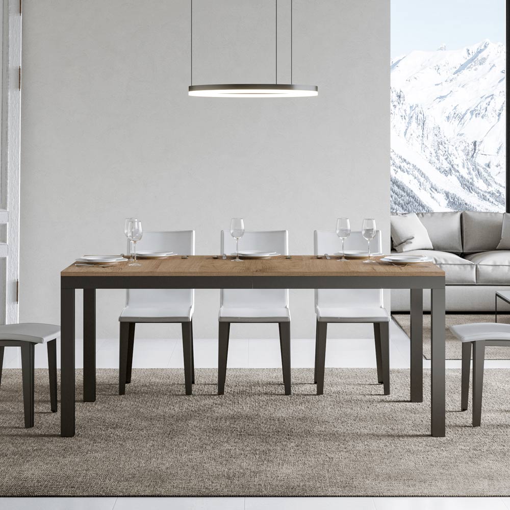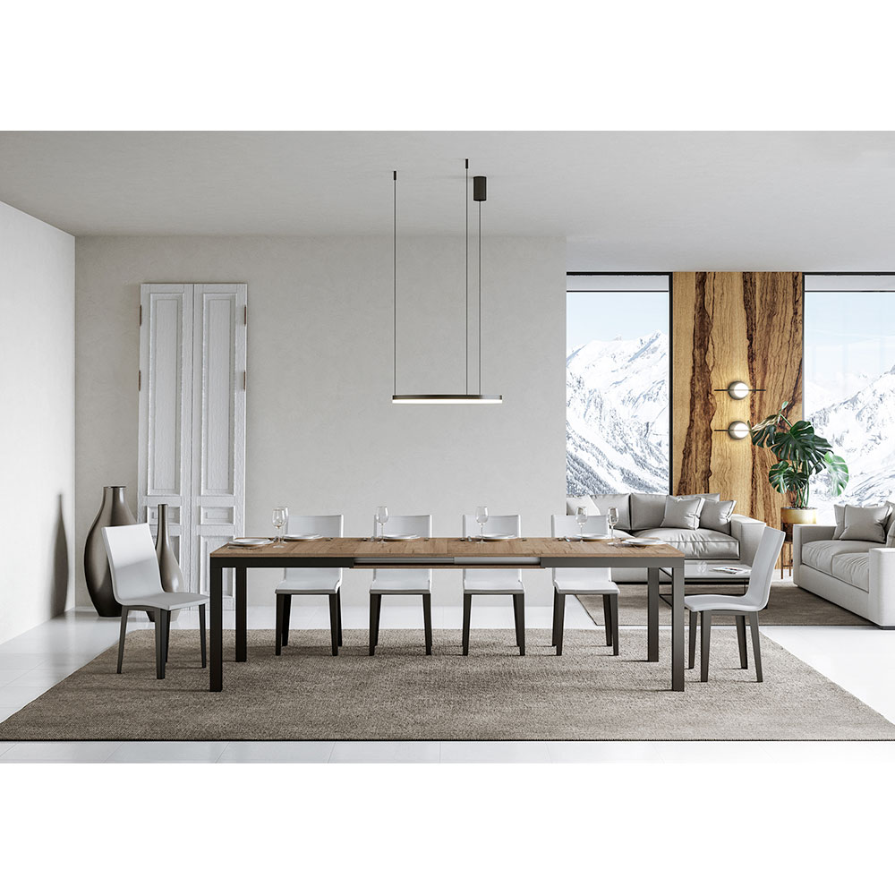 Esta mesa extensível é uma síntese perfeita de elegância discreta e funcionalidade moderna. O tampo da mesa convida as pessoas a reunirem-se para partilhar refeições e momentos preciosos, irradiando uma sensação de acolhimento e calor. As pernas são robustas, garantindo estabilidade e adicionando um toque de contraste contemporâneo.