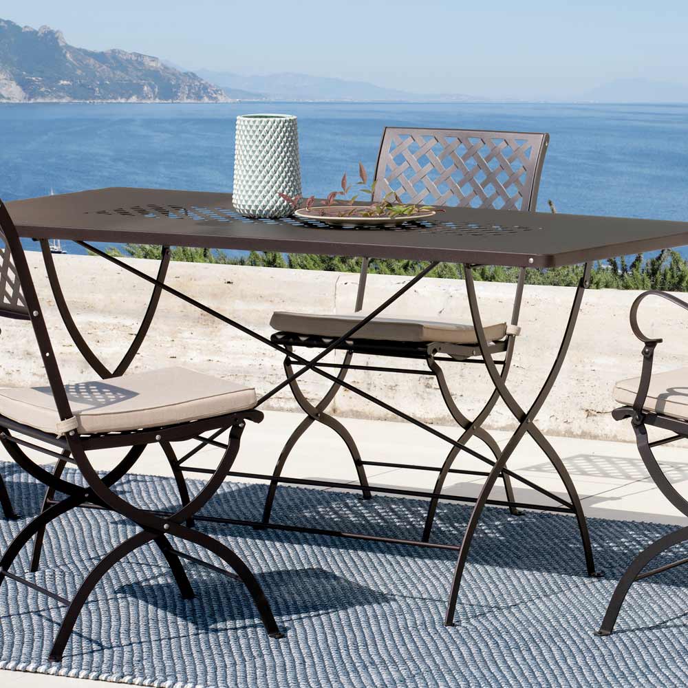 Esta mesa de jardim foi projetada para ser uma peça de mobiliário marcante e extremamente durável, graças à qualidade de seus materiais. Este é um produto 100% italiano . Sua estrutura é feita de aço e reforçada por um processo de galvanização para torná-lo resistente a agentes corrosivos e atmosféricos . Sua estrutura dobrável faz desta mesa um móvel perfeito para momentos de convívio e é excelente para otimizar espaços posteriormente.