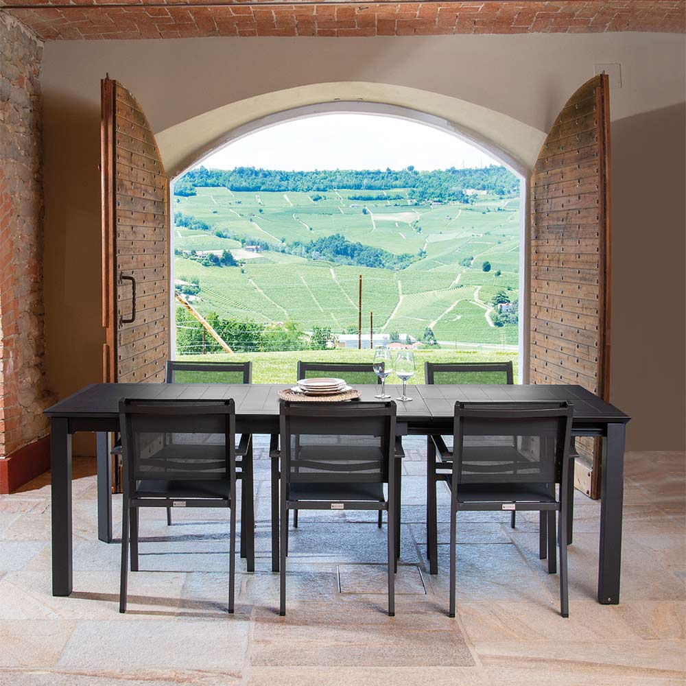 Esta mesa extensível de alumínio é a escolha ideal para quem procura versatilidade sem comprometer o estilo e a qualidade. Feita a partir de uma estrutura de alumínio resistente , esta mesa combina durabilidade com leveza, tornando-a perfeita para uso ao ar livre em todas as condições climáticas. O acabamento adiciona um toque de elegância moderna que se encaixa perfeitamente em qualquer ambiente ao ar livre, do jardim ao terraço.