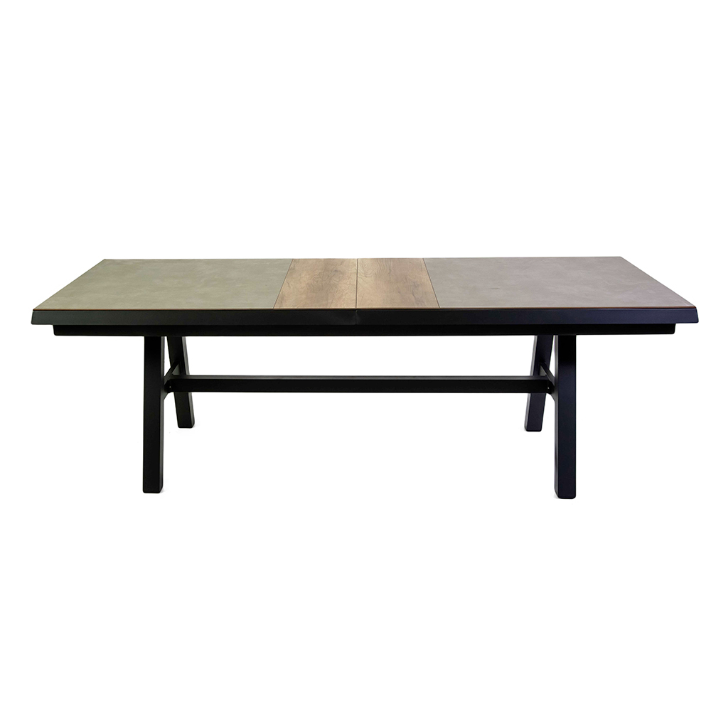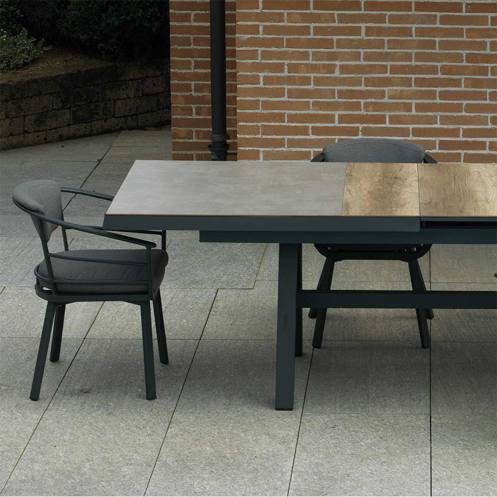 O sistema de extensão central automática torna esta mesa extremamente prática, permitindo-lhe adaptá-la facilmente ao número de convidados. Esta caraterística, combinada com o seu design limpo e construção robusta, faz com que a mesa seja uma adição obrigatória para quem gosta de se divertir ao ar livre.