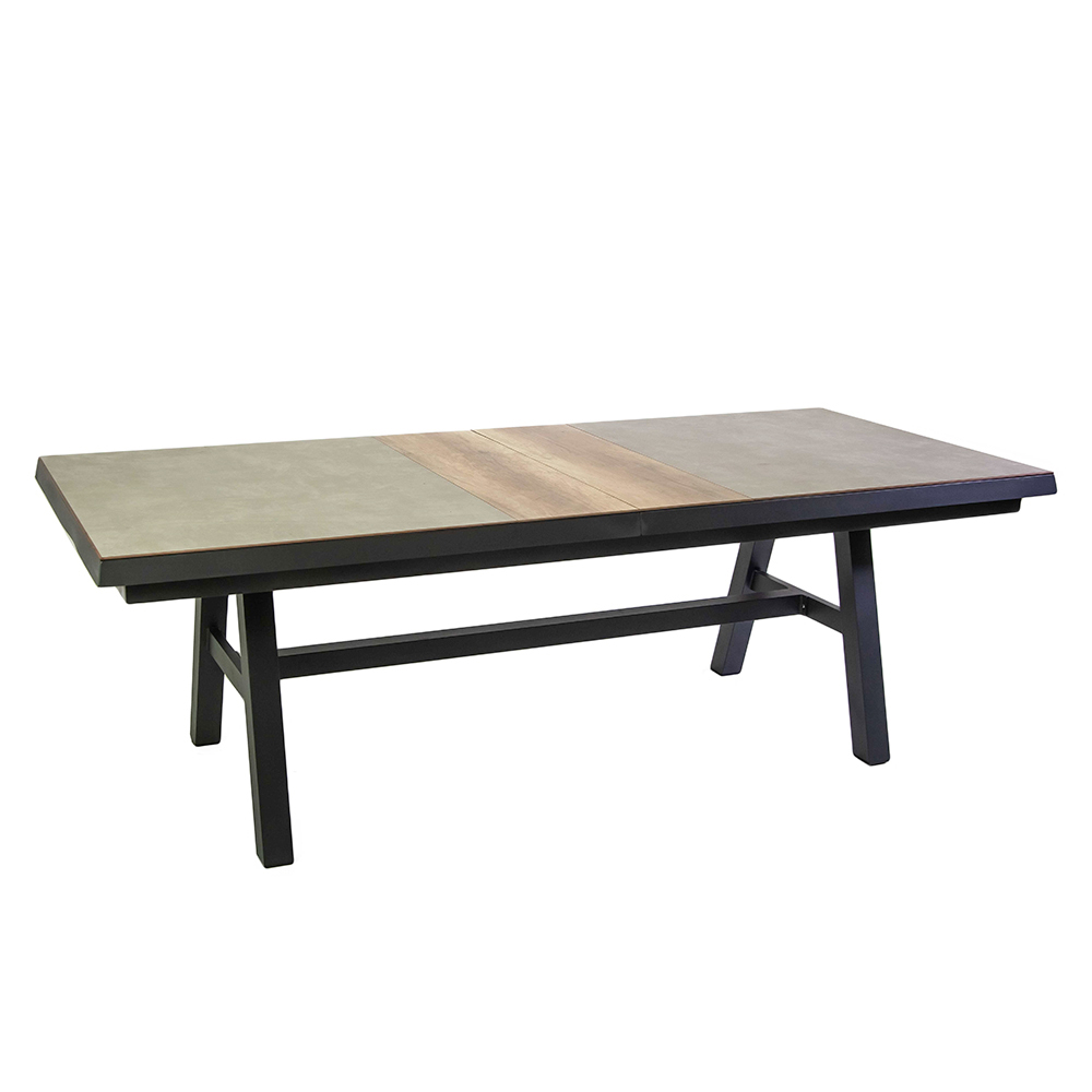 Leve um toque de elegância e modernidade ao seu espaço exterior com esta sofisticada mesa, perfeita para qualquer ocasião. A estrutura de alumínio de cor antracite é tratada com um revestimento a pó para garantir resistência e durabilidade, mantendo uma aparência impecável ao longo do tempo. O tampo em HPL de 6mm oferece uma superfície sólida e elegante, dividida em 5 painéis que se combinam num design atraente e funcional.