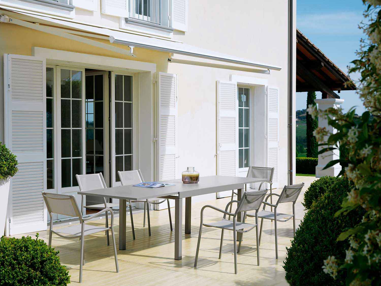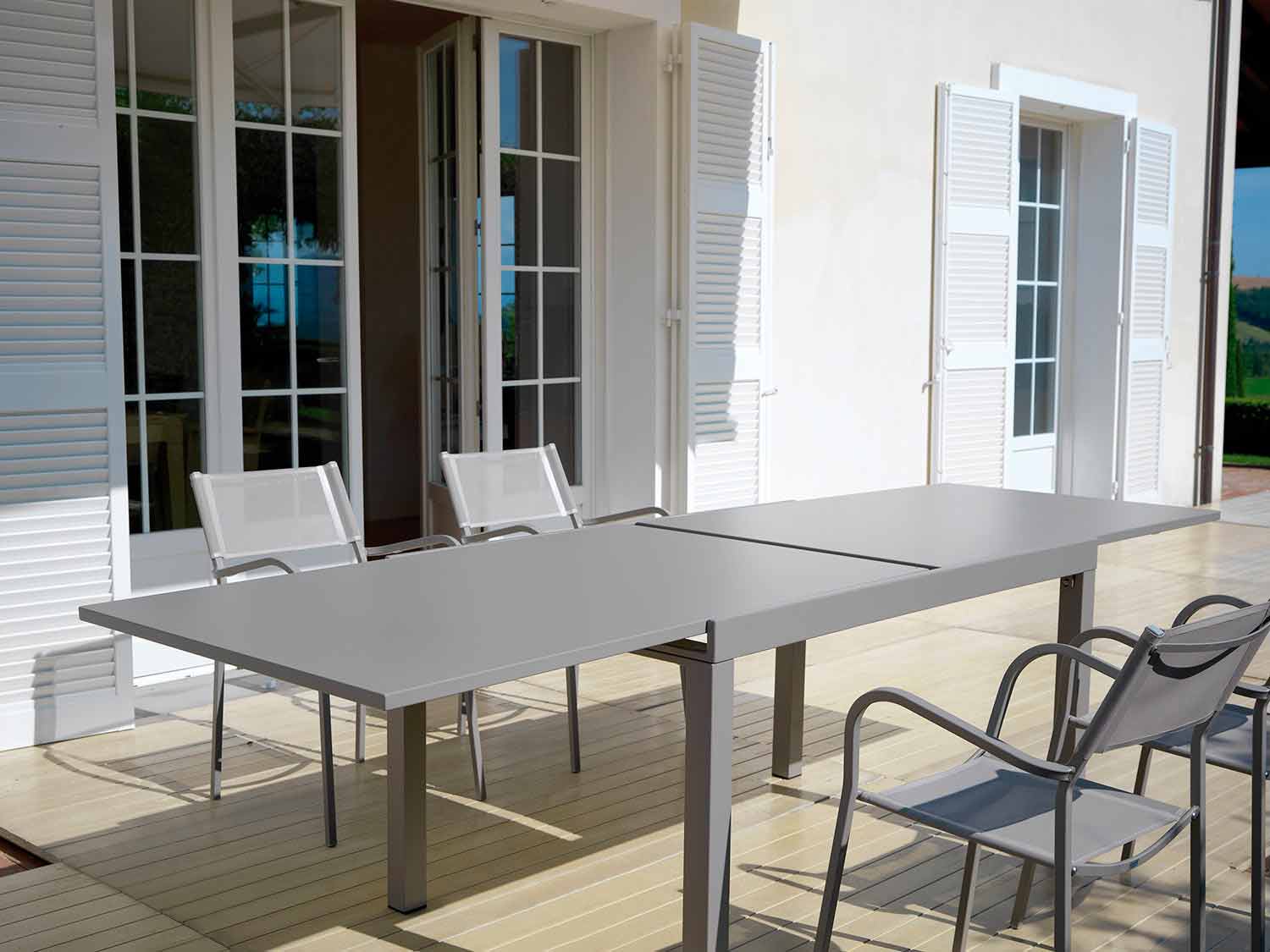 Mesa para área externa extensível até 280 cm em ferro galvanizado com revestimento em pó. Fabricado na Itália.