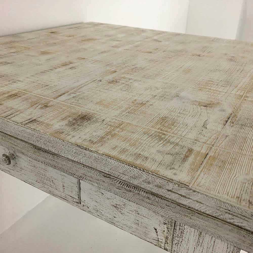 Mesa de jantar confeccionada artesanalmente na Itália com estrutura em madeira maciça de abeto completa com prática gaveta lateral e tampo e extensão em tripla camada cruzada de 27 mm especialmente desenhada para evitar rachaduras que a madeira, sendo um material vivo, poderia criar com o tempo.