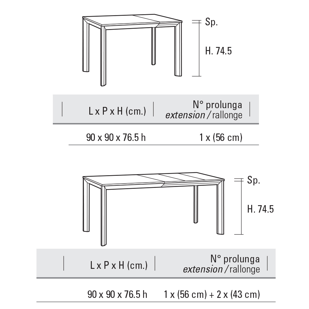 Tamanhos disponíveis:- C 90/146 x P 90 x A 76,5 cm (1 extensão de 56 cm);