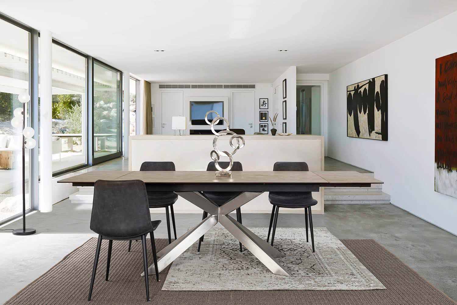 Mesa de jantar moderna com tampo em cerâmica extensível até 240 cm.