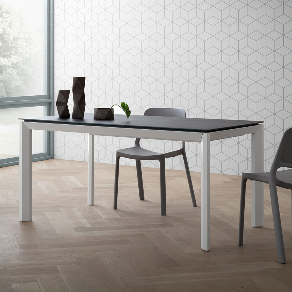 Mesa de jantar extensível até 240 cm em cerâmica laminada e alumínio Made in Italy.