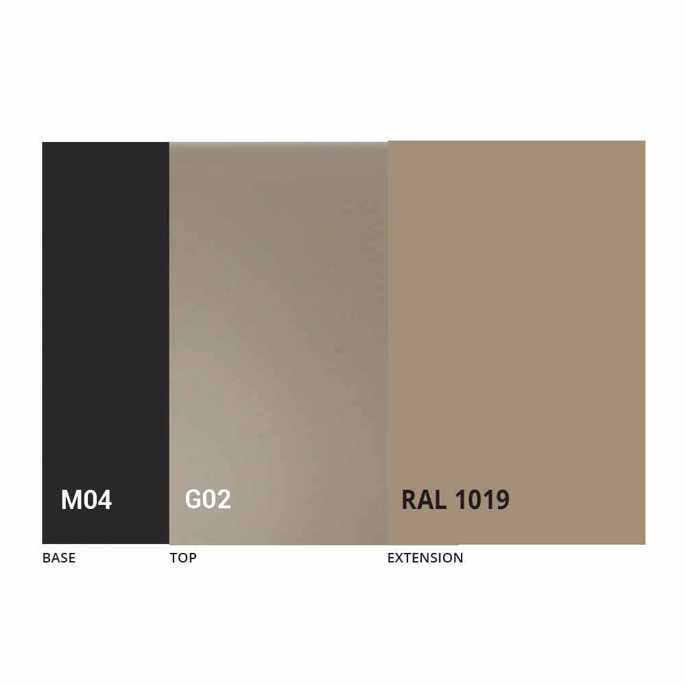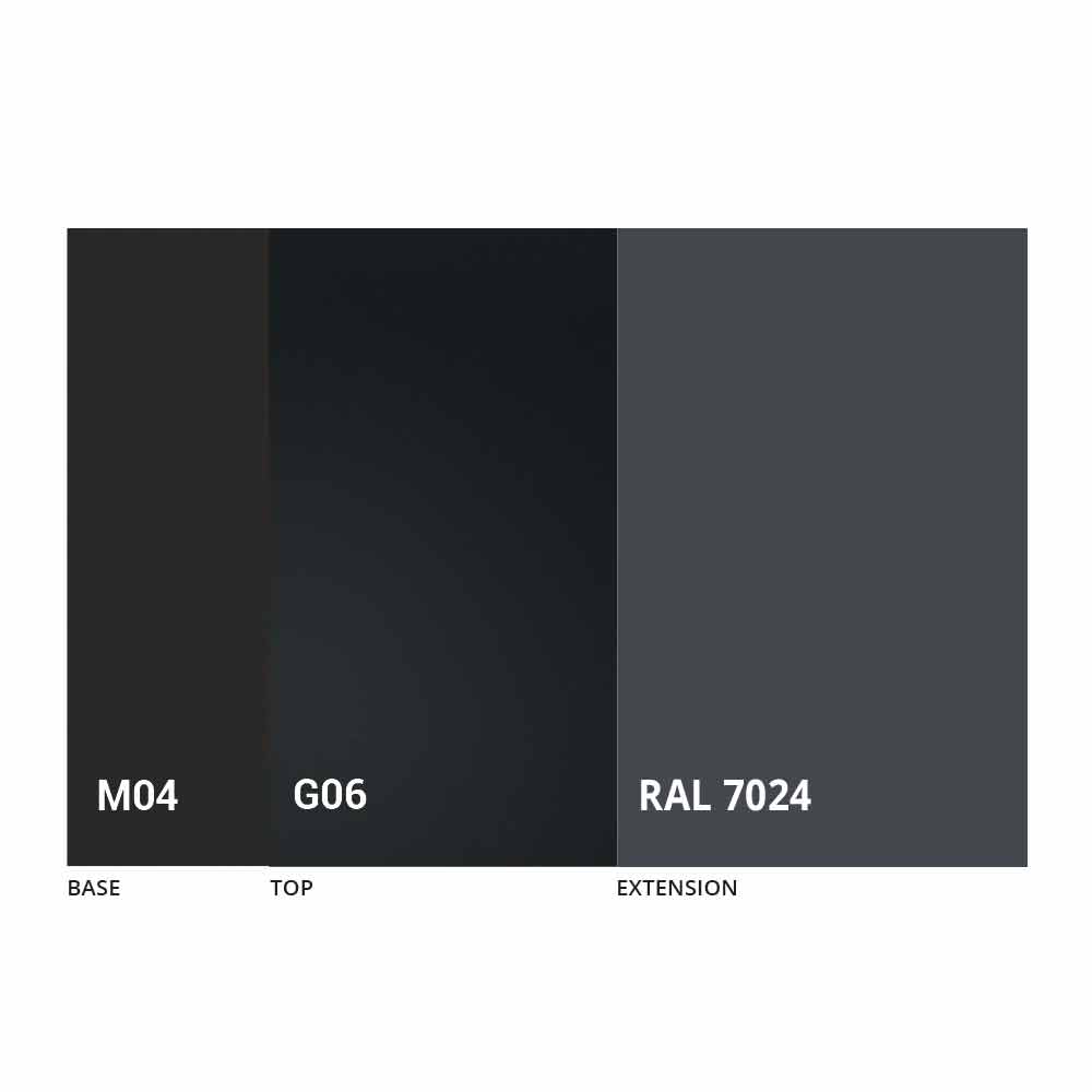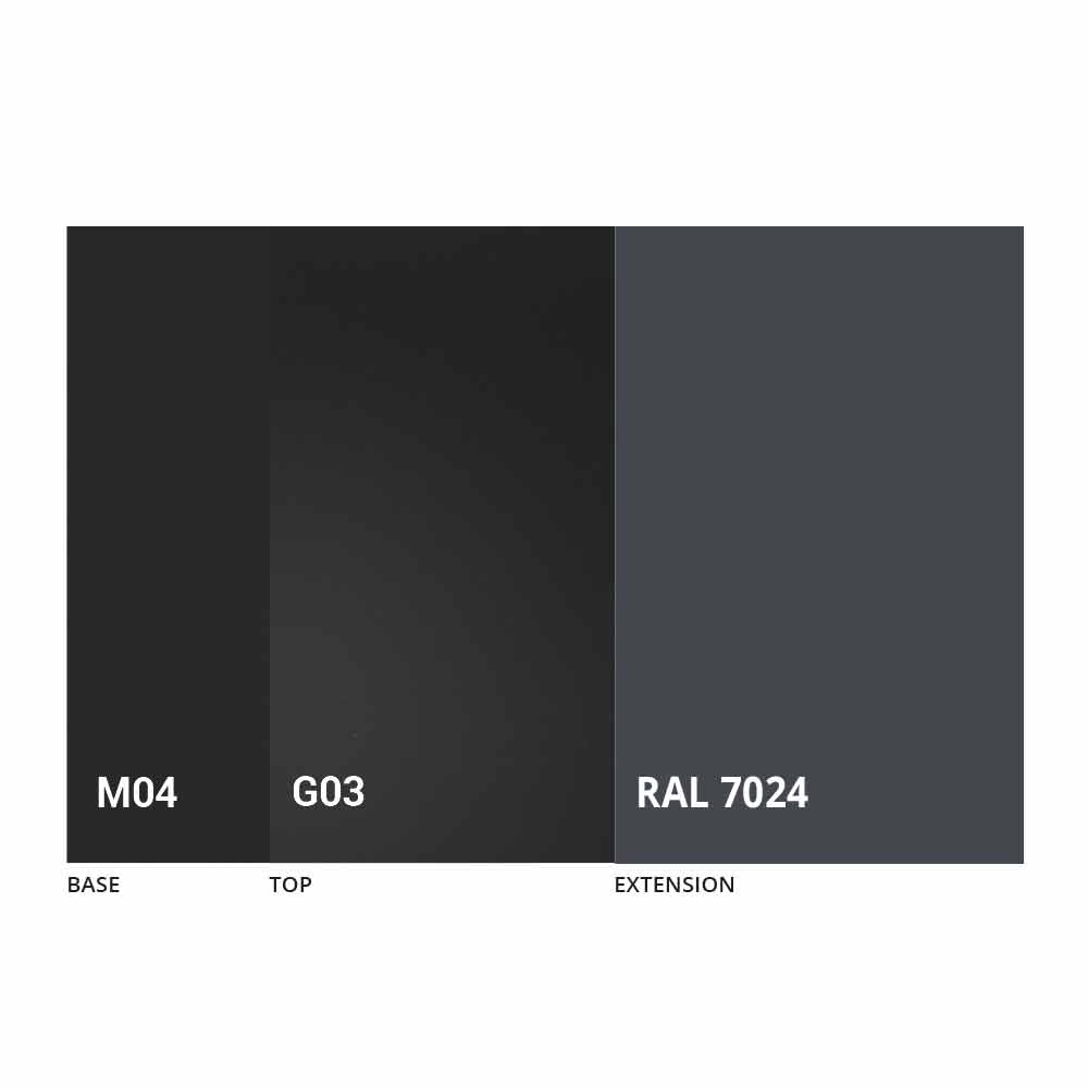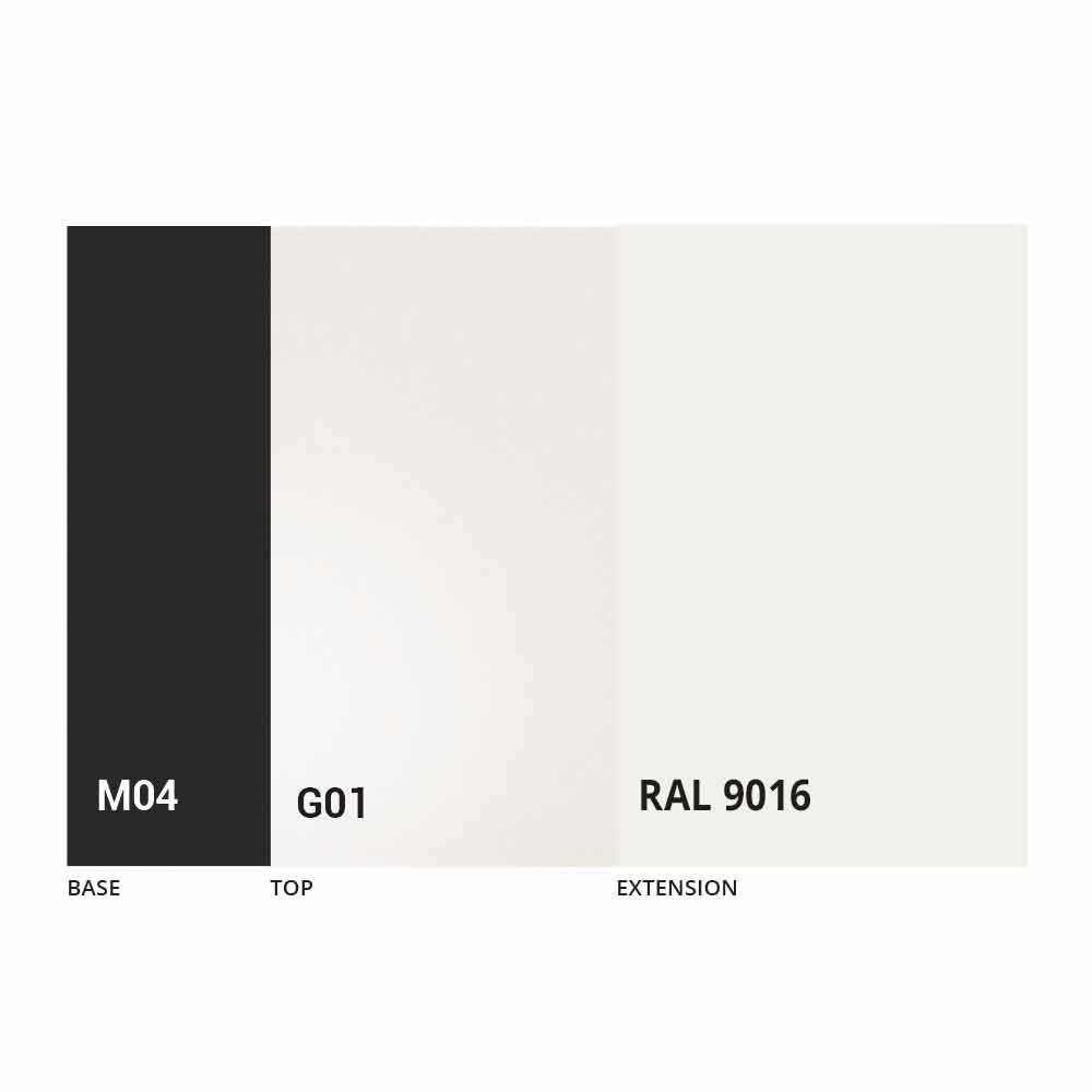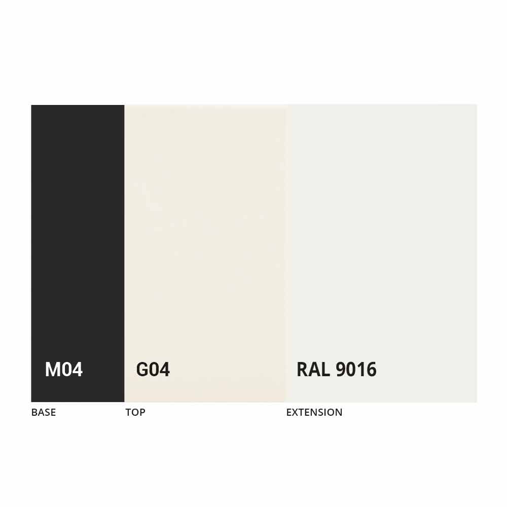 O tampo, a extensão e a base da mesa podem ser personalizados com diferentes acabamentos de amostra. Para informações, entre em contato conosco através do formulário "