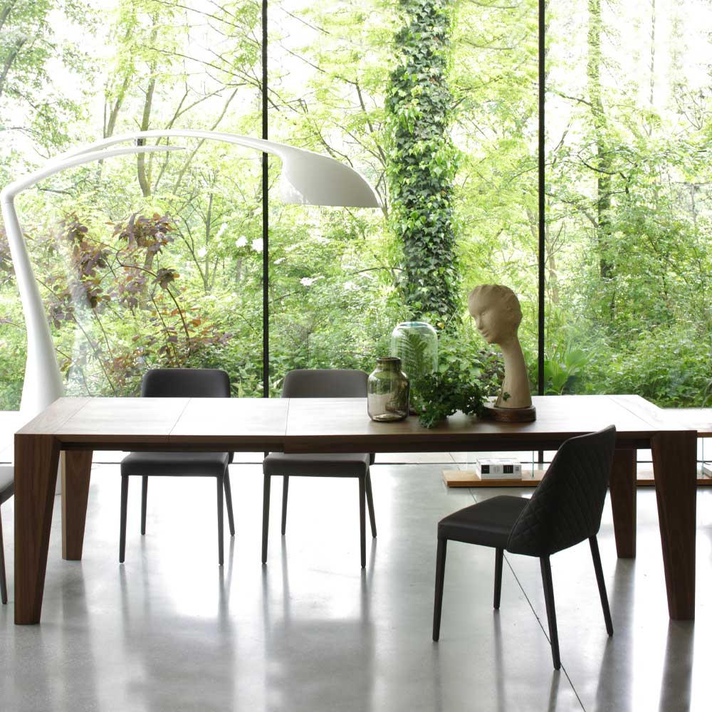 Made in Italy. A mesa expressa a essência da natureza através dos grãos com acabamento em nogueira Canaletto, presentes tanto no tampo quanto nas pernas. Este imponente e requintado móvel oferece versatilidade com a sua função extensível, permitindo escolher entre uma versão com uma ou duas extensões. O mecanismo deslizante, visível mesmo quando a mesa está estendida, mantém um design coerente, aliando estética e funcionalidade. É mais do que uma mesa de jantar, é uma obra de arte que celebra a beleza da natureza no seu espaço.