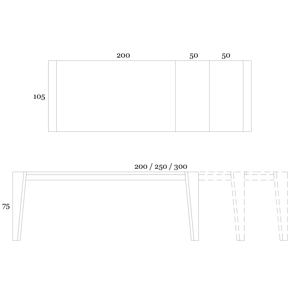 - comprimento: 200/250/300 cm x profundidade: 105 cm x altura: 75 cm - 2 extensões