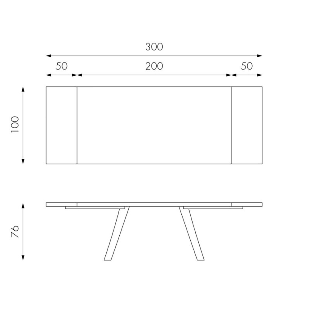 - Comprimento: 200/300 cm x Profundidade: 100 cm x Altura: 76 cm