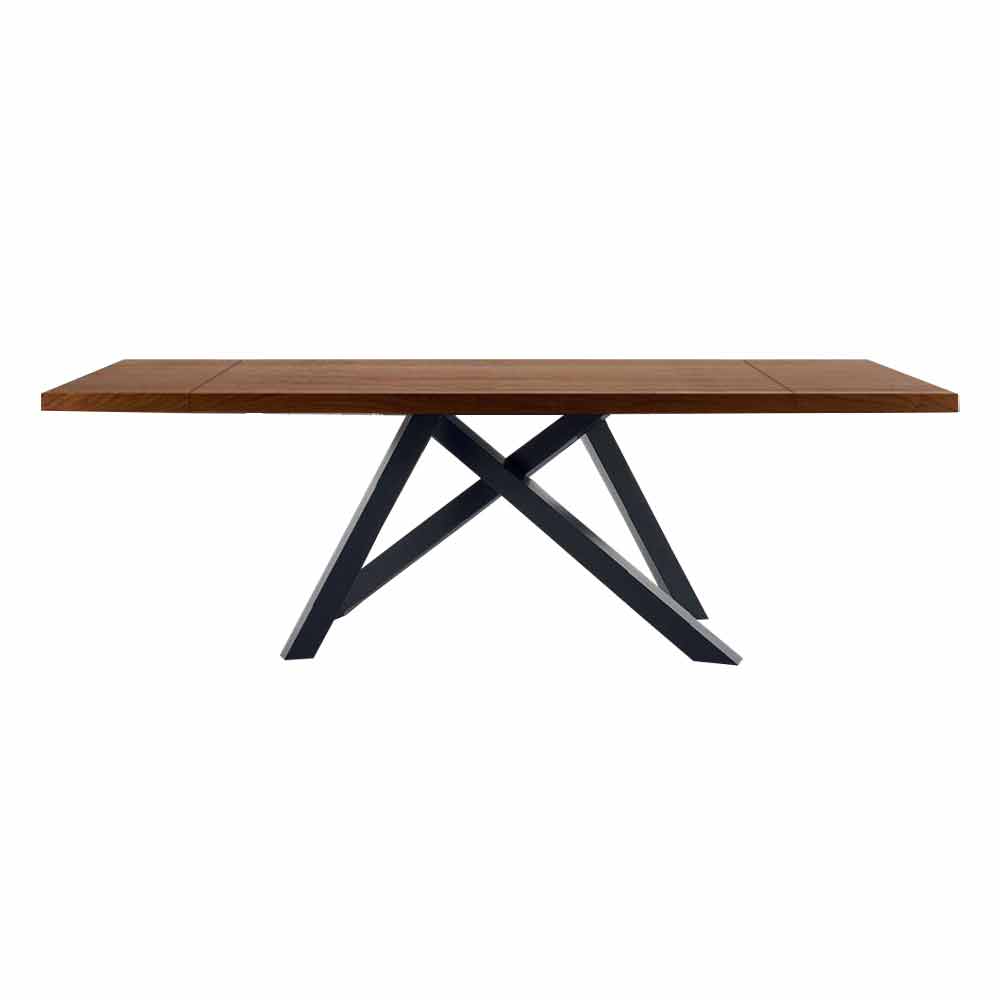 Mesa de jantar extensível com tampo em nobre folheado de nogueira Canaletto, Fabricado na Itália.