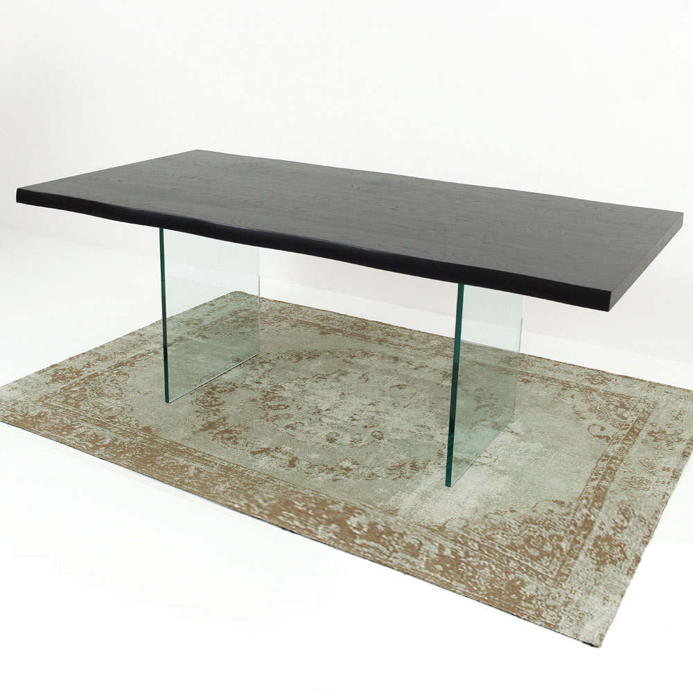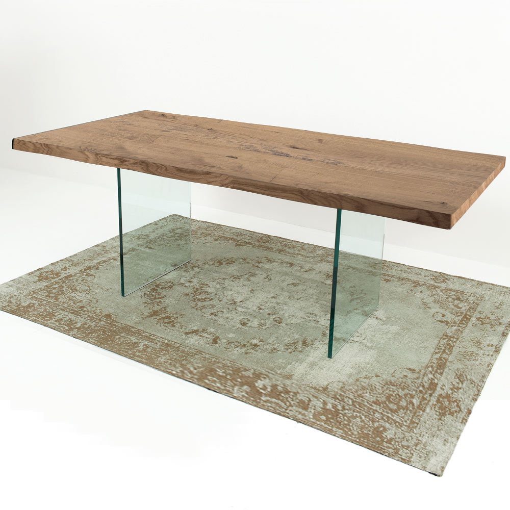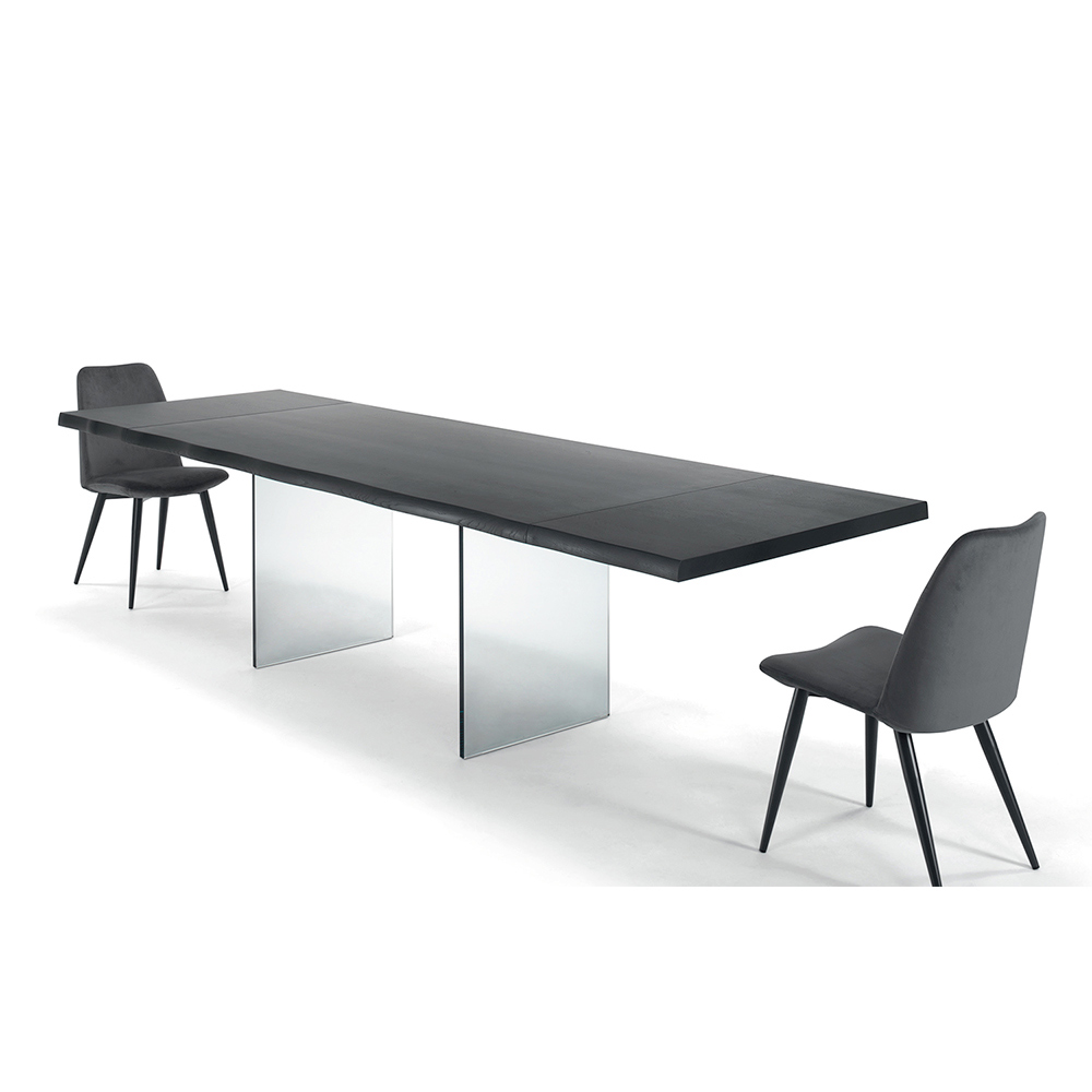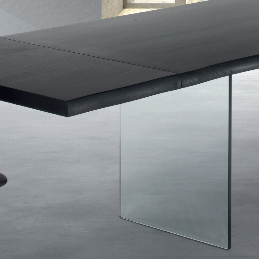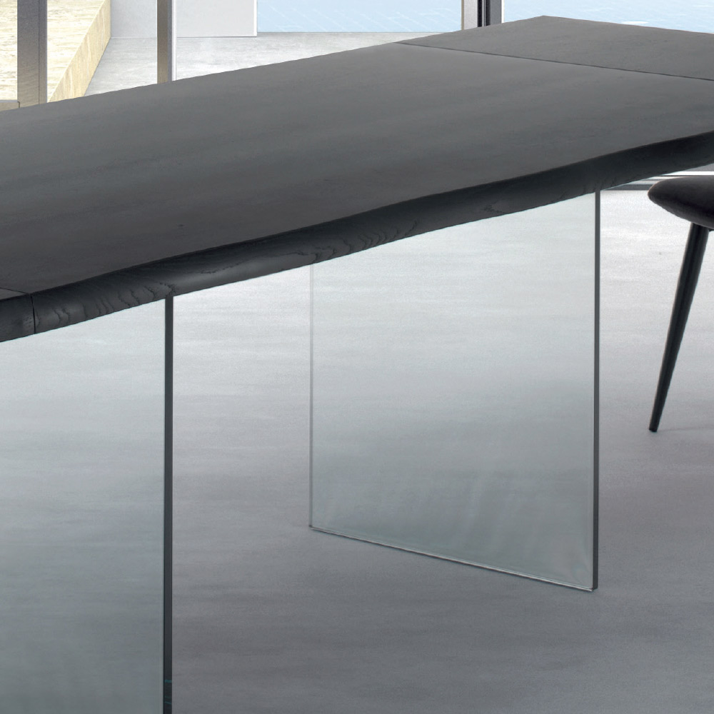 Mesa de jantar extensível até 300 cm com tampo em madeira folheada e base em vidro made in Italy.