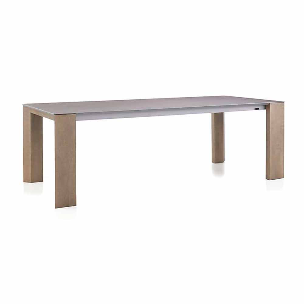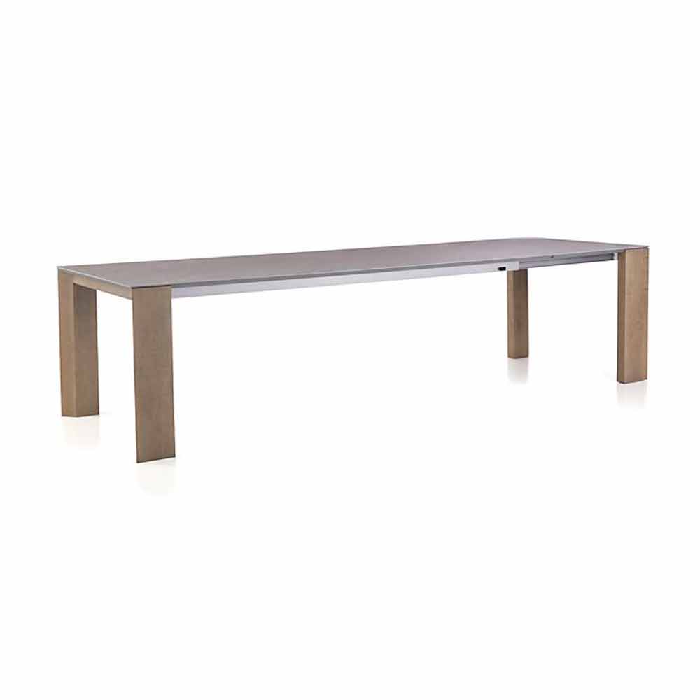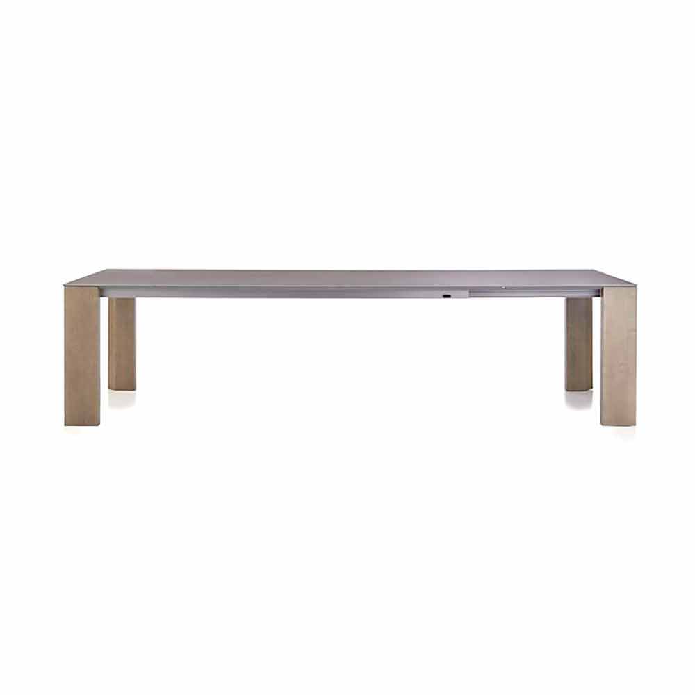 A ideia desse tipo de coleção de mesas, com medidas realmente importantes até 300 cm de comprimento, é oferecer um serviço de extensibilidade de fácil acesso. A elegância também está presente em uma posição alongada. Esta simplicidade na função de extensibilidade é possível através da utilização de uma moldura de alumínio com guias integradas, combinando materiais tradicionais nobres como a madeira e a cerâmica através de um design contemporâneo e duradouro.