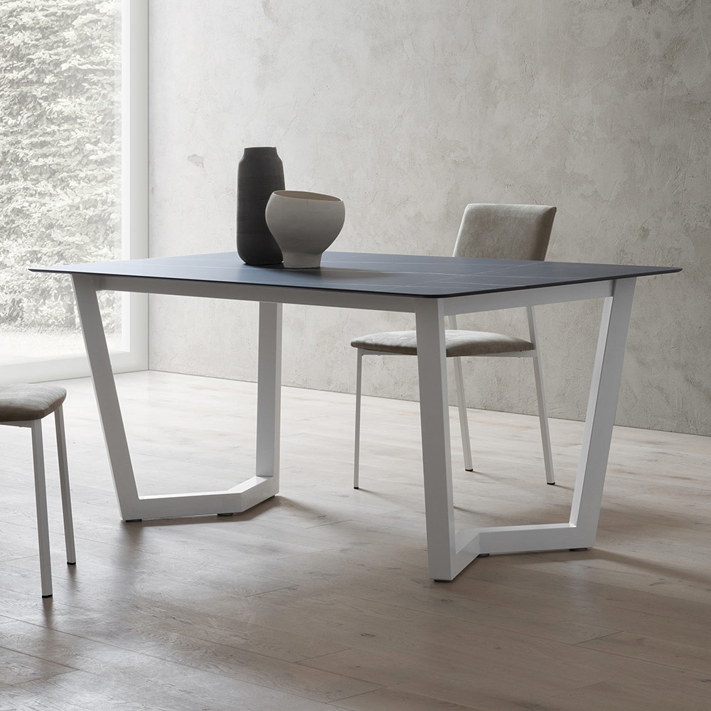 Mesa de cozinha extensível com tampo em HPL em camadas e base metálica Fabricado na Itália.