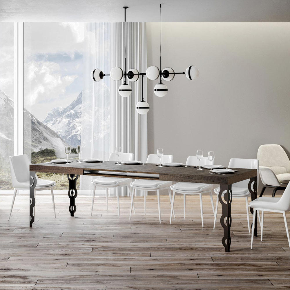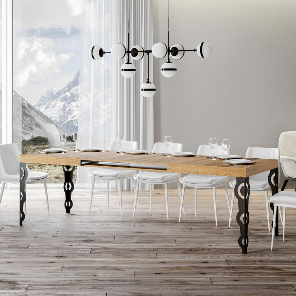 Esta mesa extensível combina o charme antigo do design ornamental com a funcionalidade moderna. As pernas de ferro esculpidas apresentam padrões intrincados de barroco, um detalhe que certamente chamará a atenção.