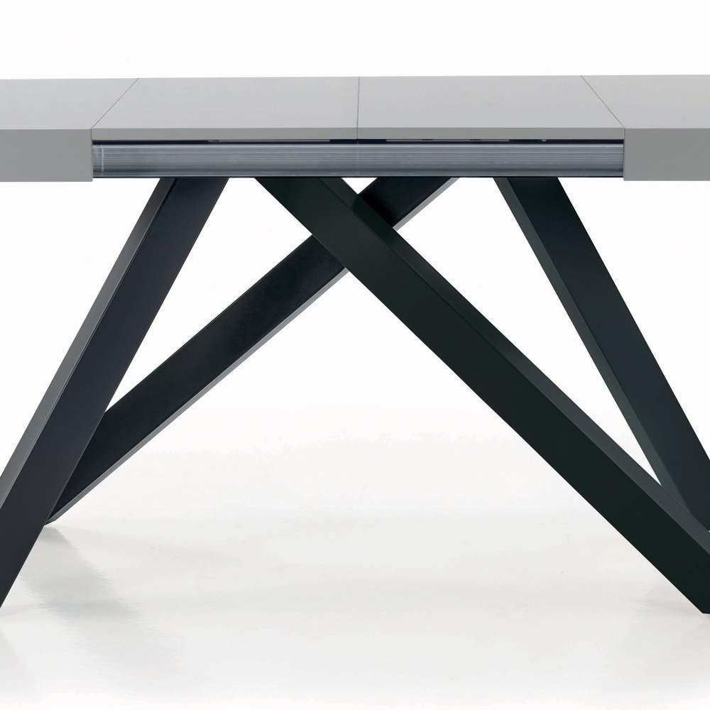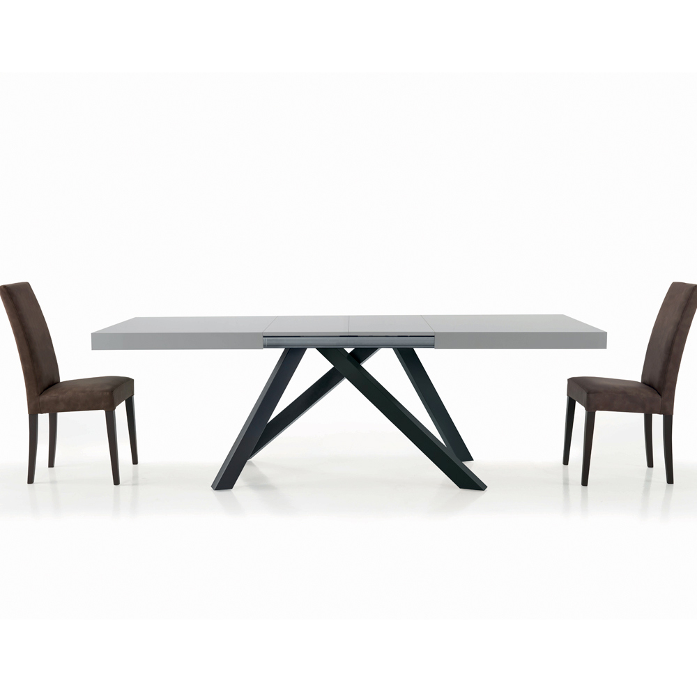 Mesa extensível de sala com abertura central sincronizada (extensões internas), tampo
