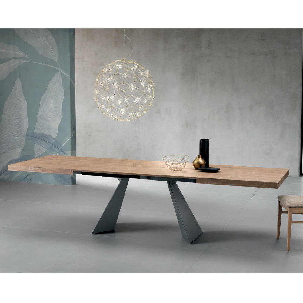Esta mesa combina criatividade arquitetônica e sofisticação contemporânea , transformando qualquer ambiente em um espaço elegante . O tampo em laminado com acabamento em carvalho realça toda a beleza dos veios naturais da madeira.