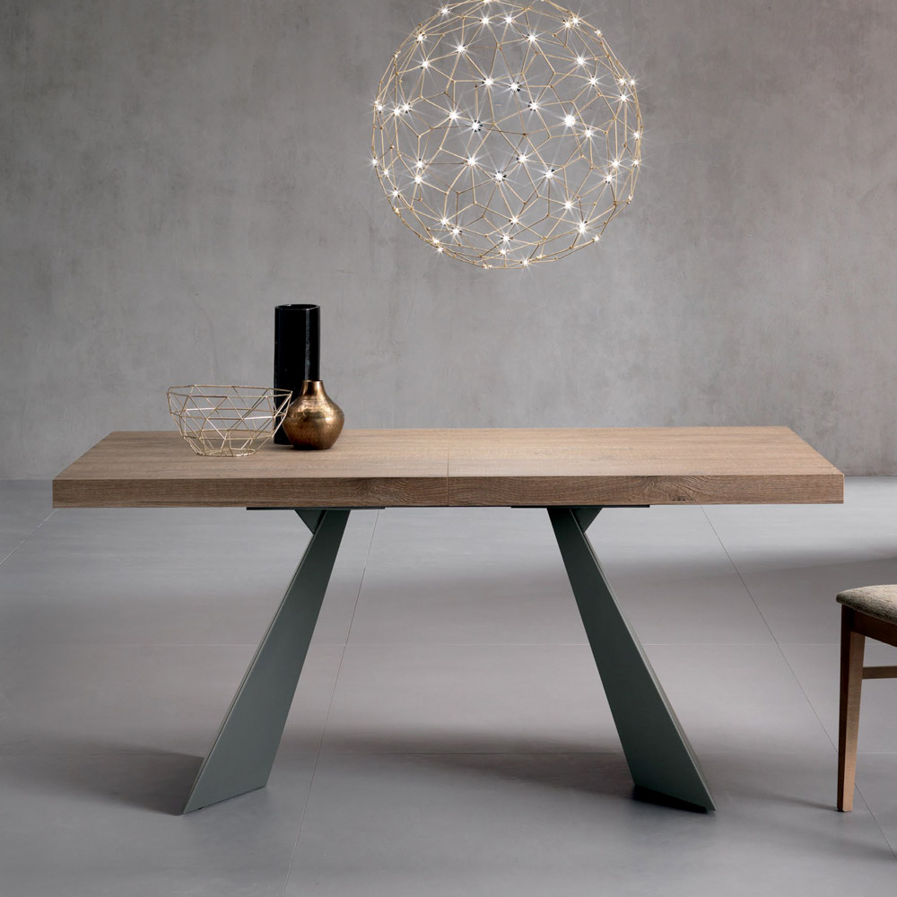 Mesa retangular extensível com tampo dobrável em laminado de 60 mm de espessura.