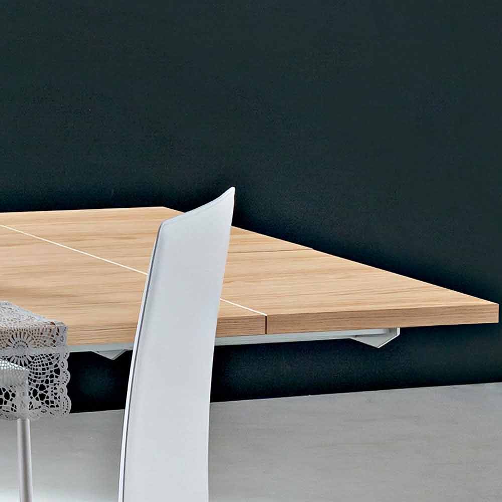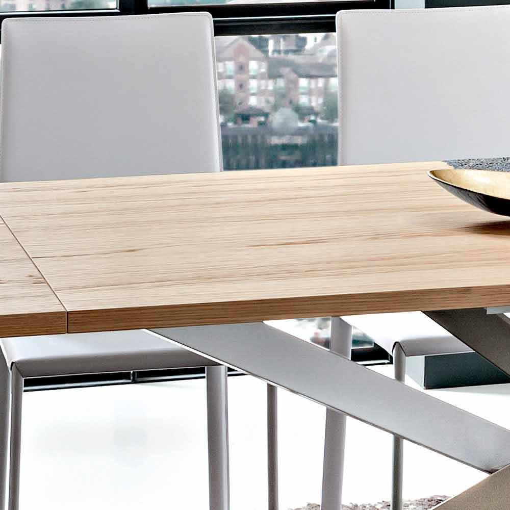 Mesa de cozinha extensível com tampo folheado a carvalho e pés de metal Fabricado na Itália.
