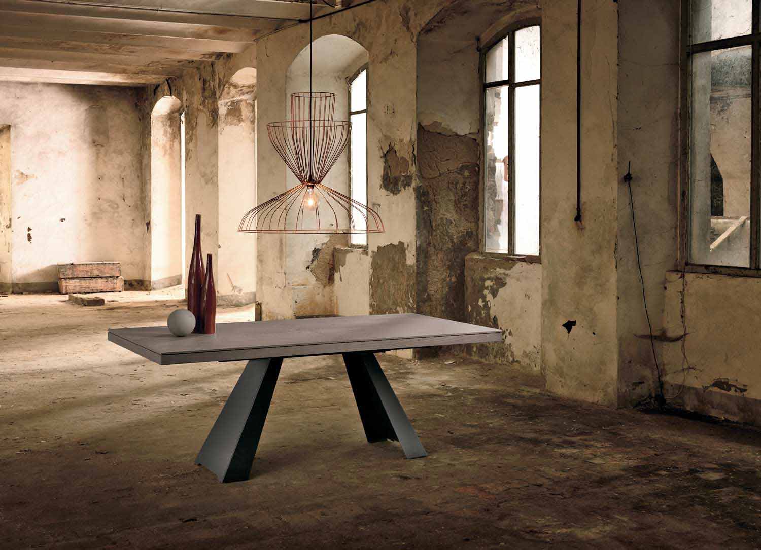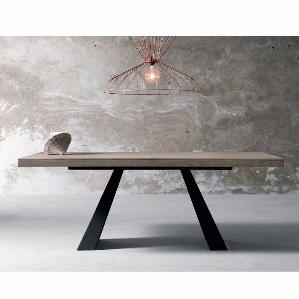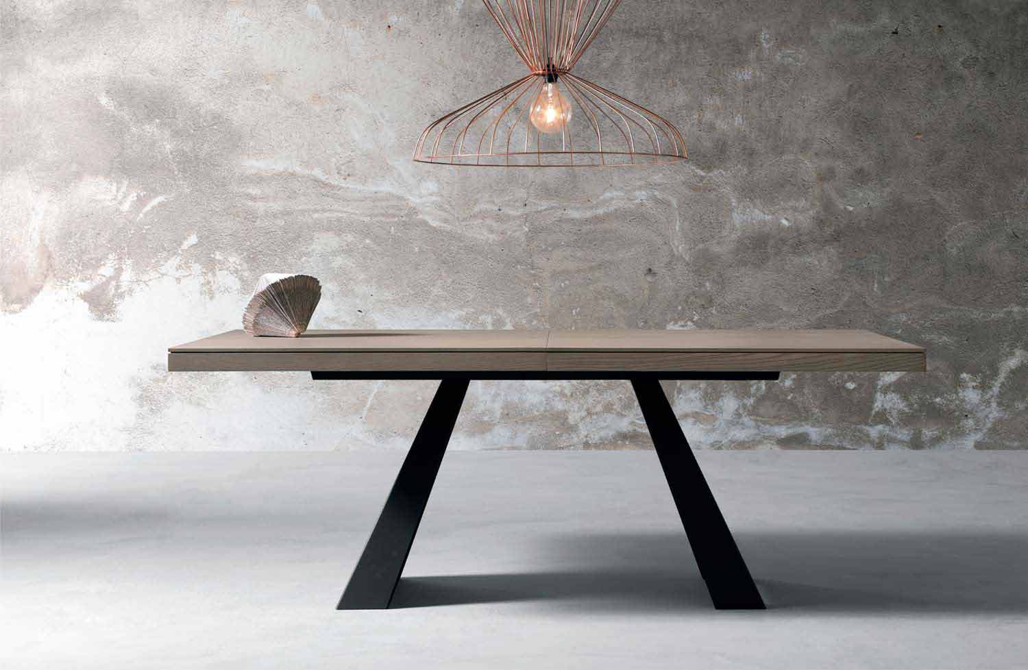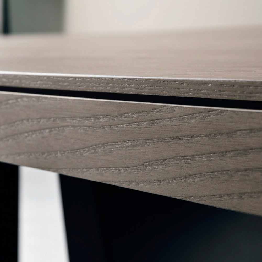 mesa de jantar extensível com deslizamento central de design contemporâneo, desenhada e produzida inteiramente na Itália.