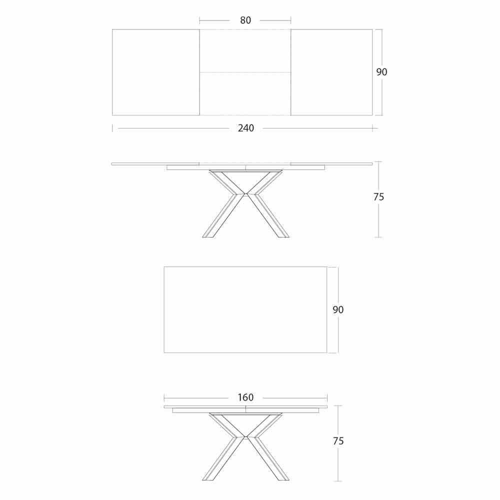 - C 160-240 x P 90 x A 75cm