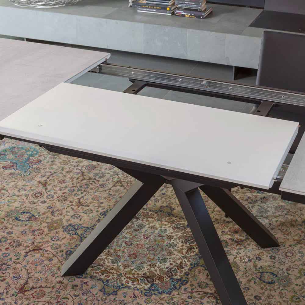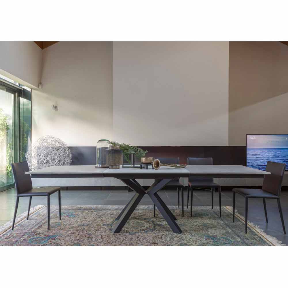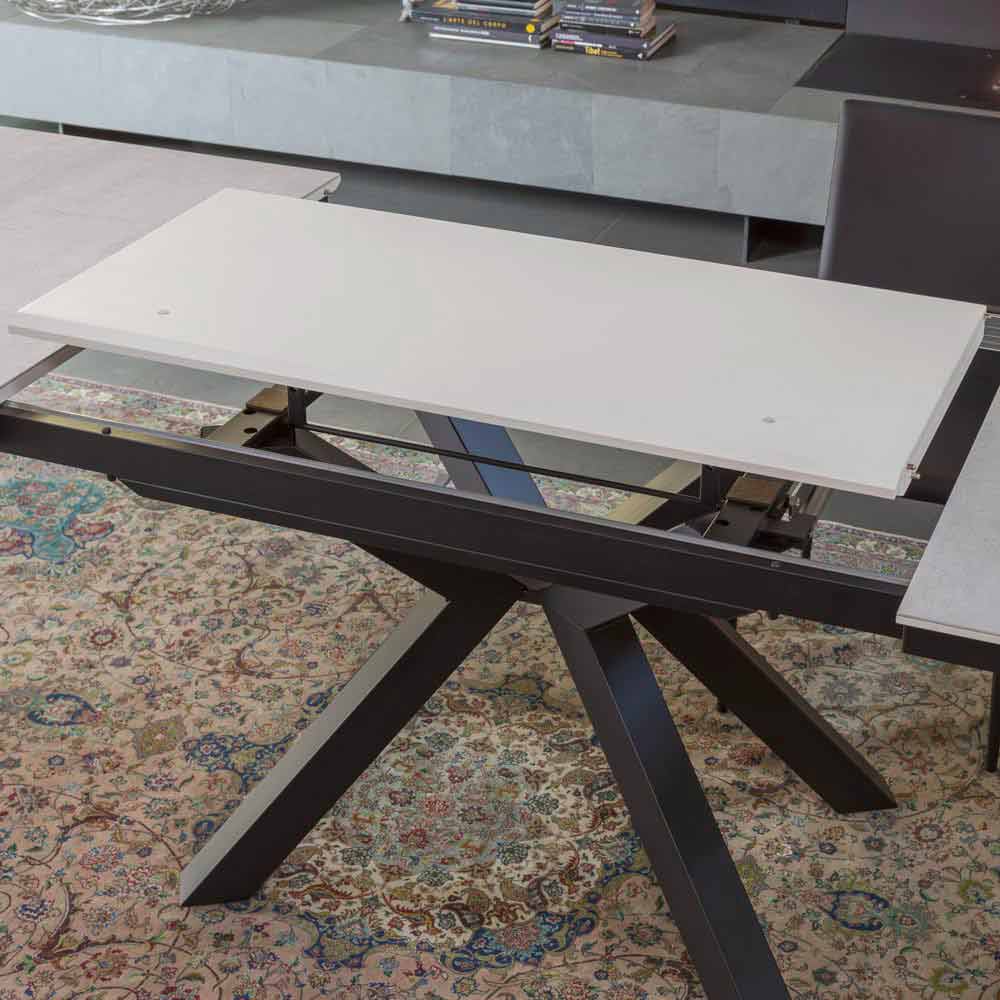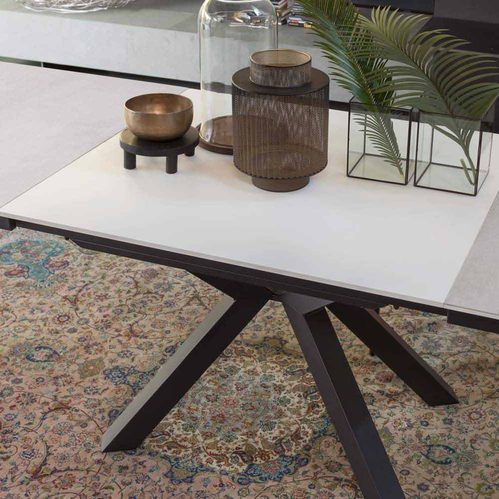 Mesa de jantar extensível até 280 cm com tampo cerâmico laminado fabricado na Itália.