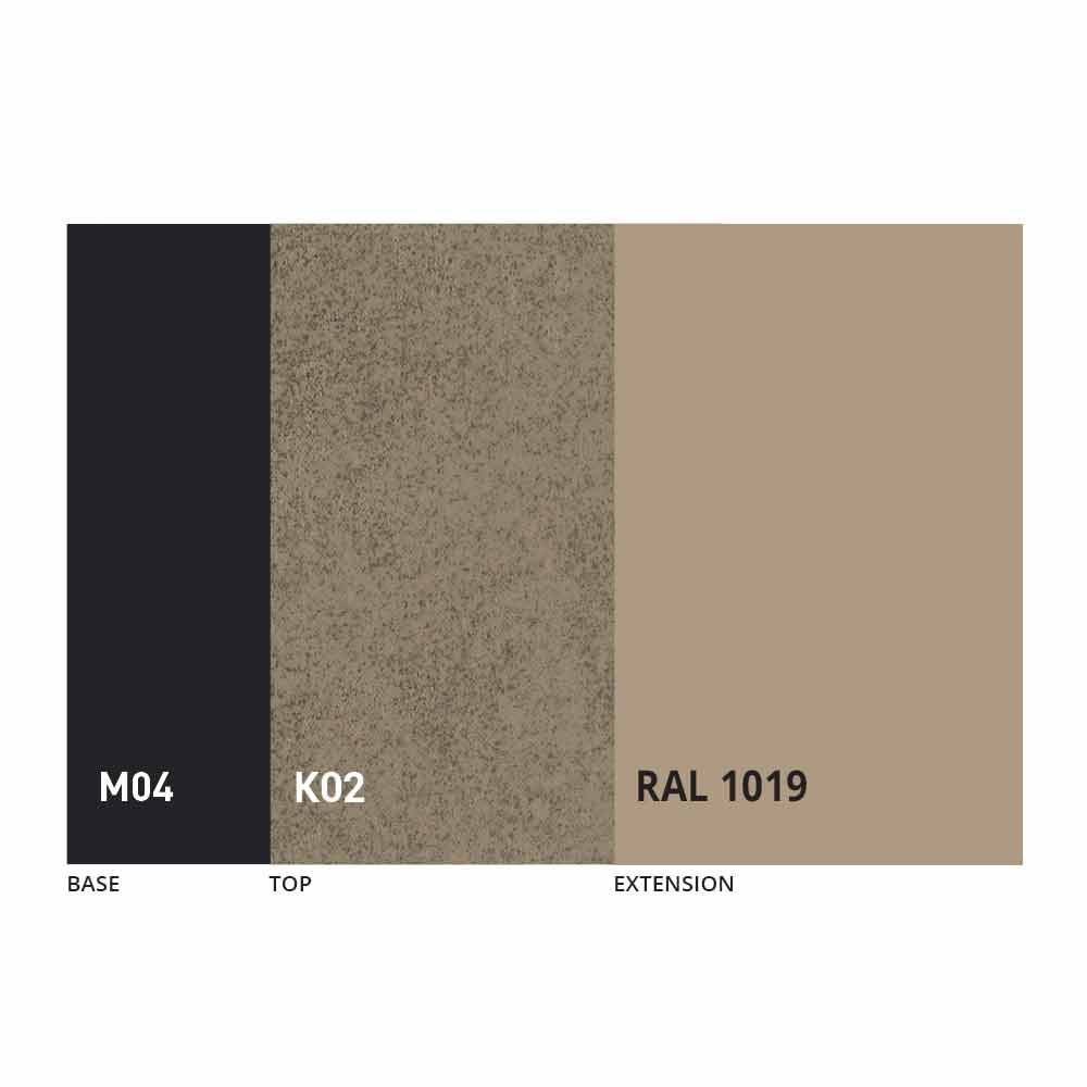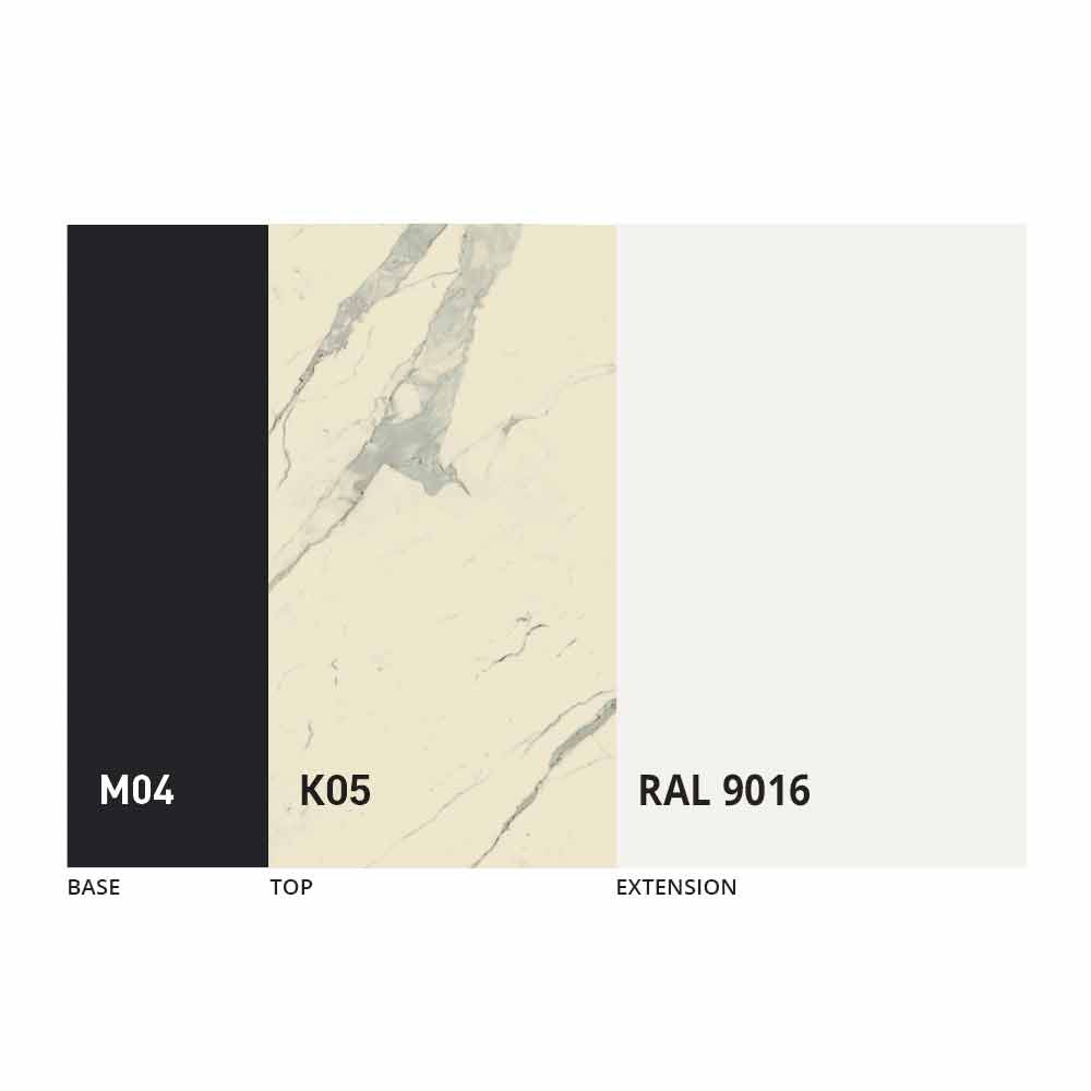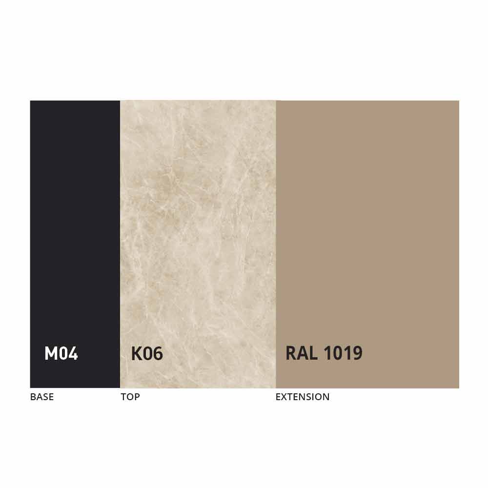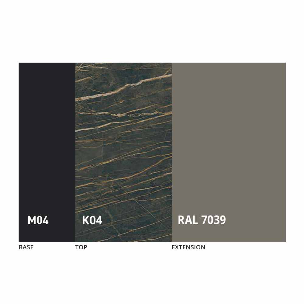 O tampo e a base da mesa podem ser personalizados com diferentes materiais e acabamentos de amostra ou lacagem RAL. Para obter informações, entre em contato conosco usando o formulário "