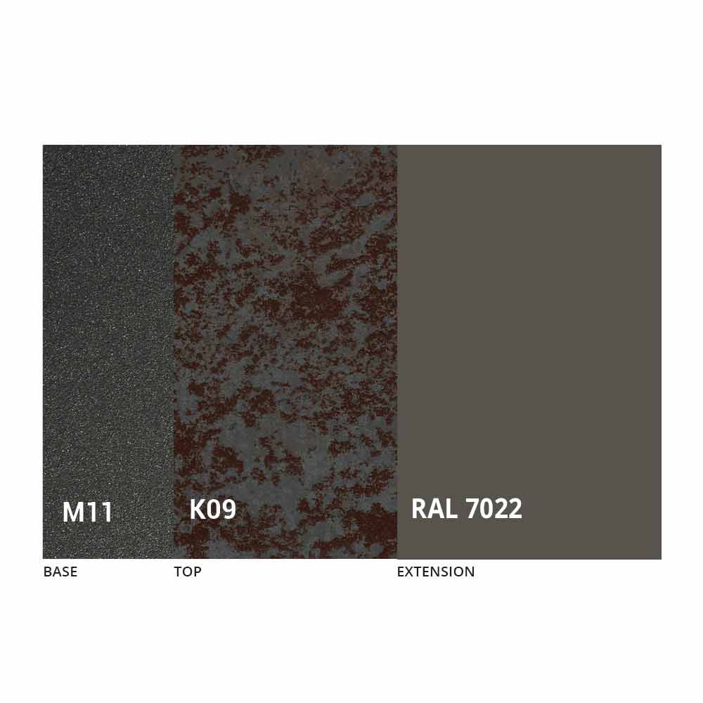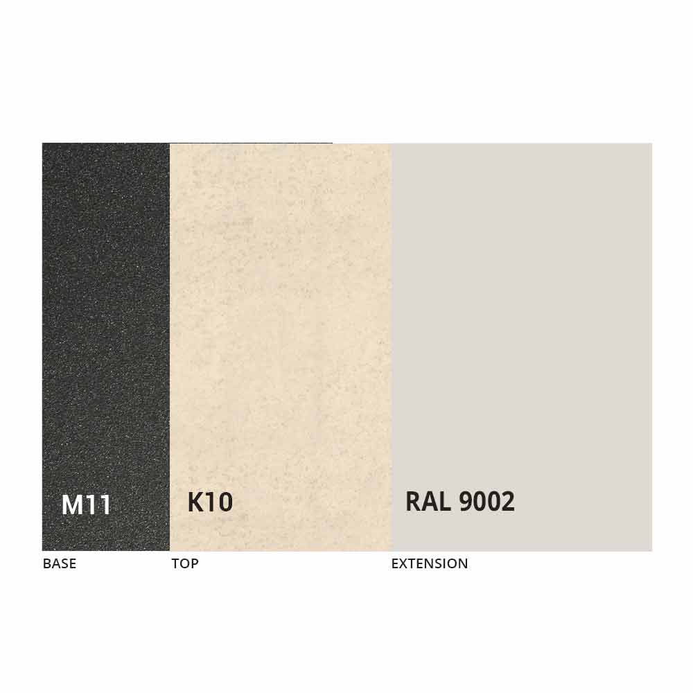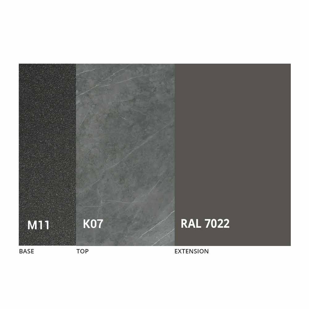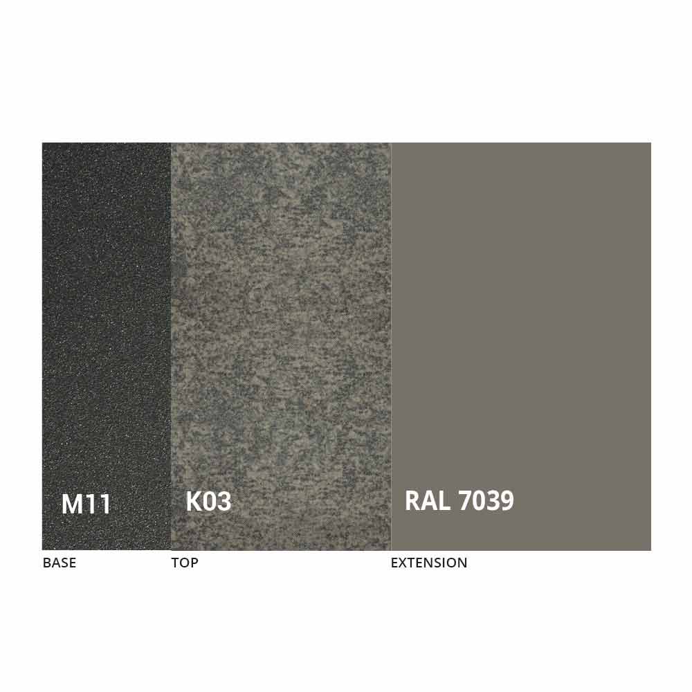 O tampo e a base da mesa podem ser personalizados com diferentes materiais e acabamentos de amostra ou lacagem RAL. Para obter informações, entre em contato conosco usando o formulário "