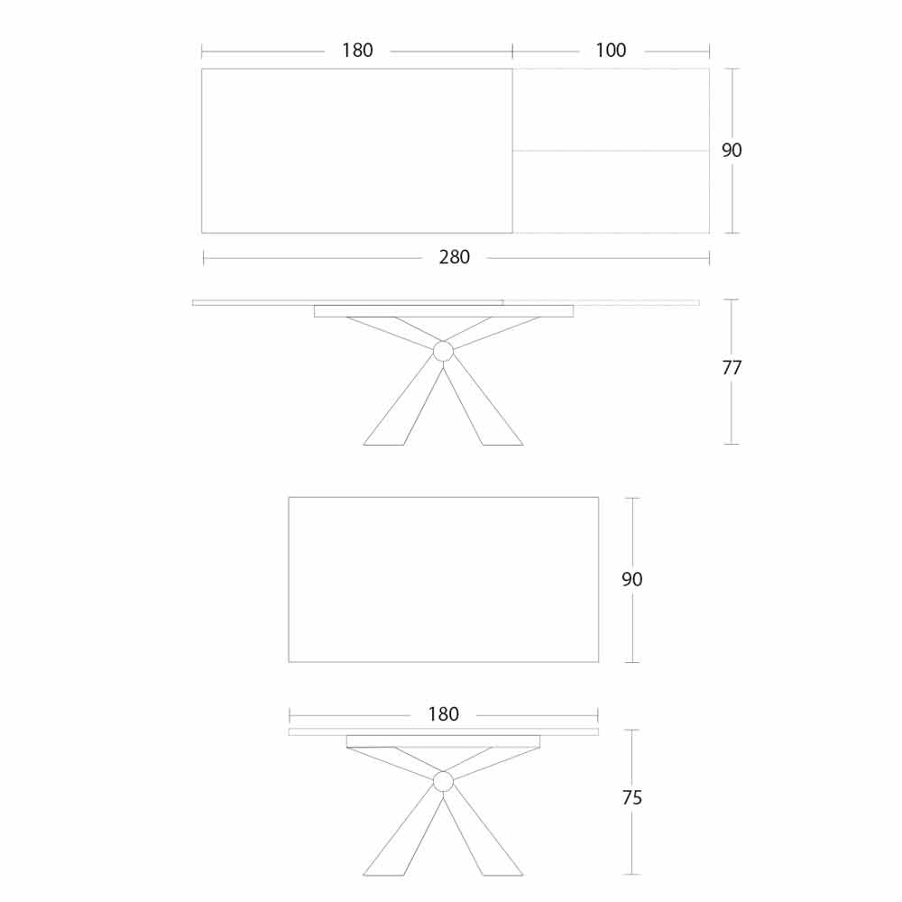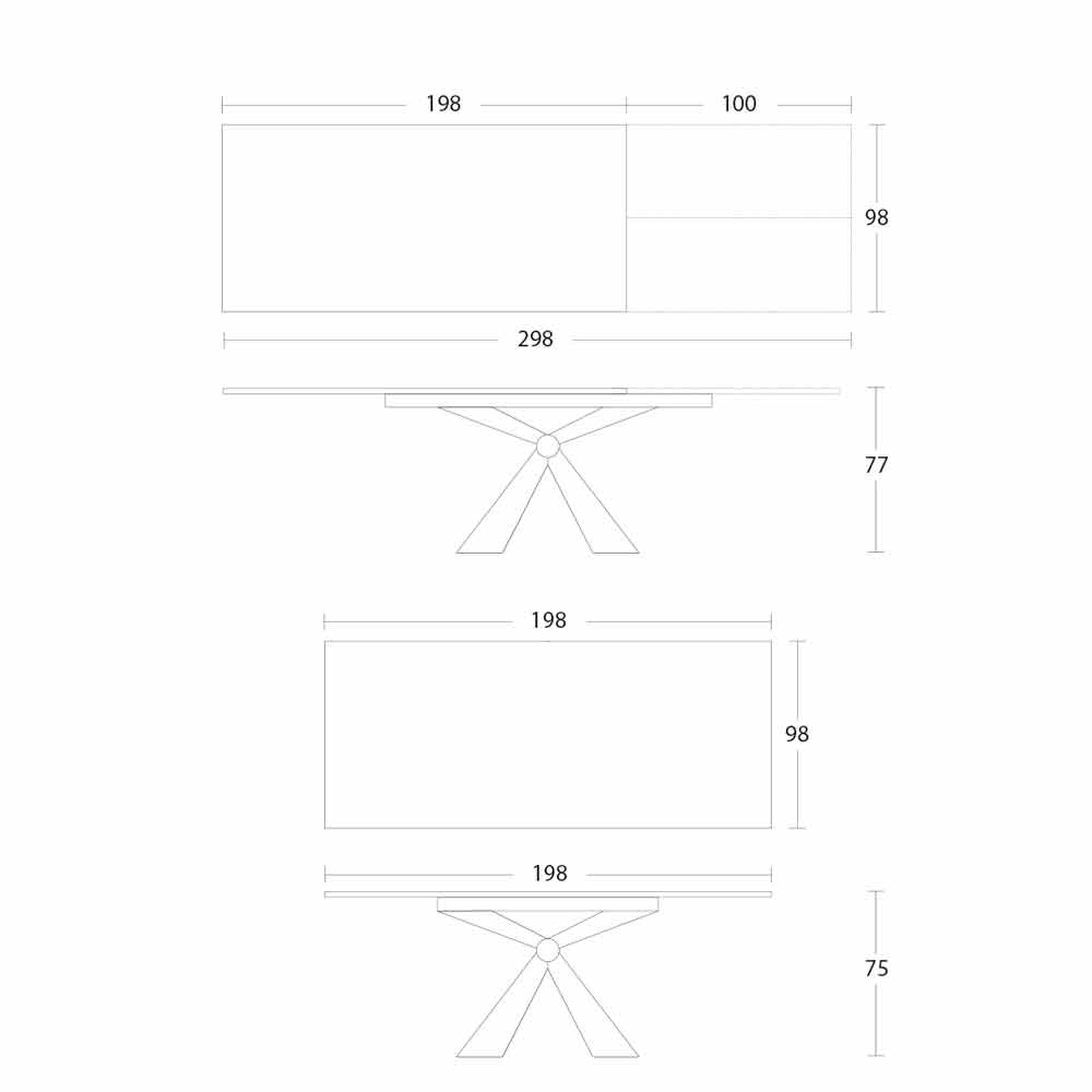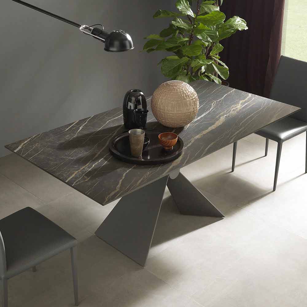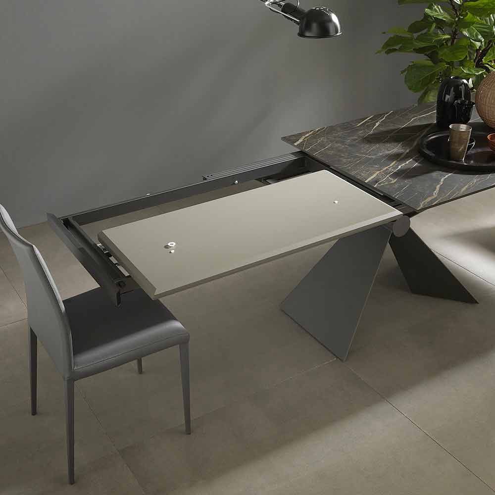 Base de mesa de jantar extensível com nó de metal e tampo de cerâmica fabricado na Itália.