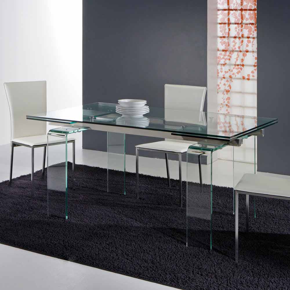Mesa extensível de jantar Atlanta, inteiramente feita de vidro temperado.