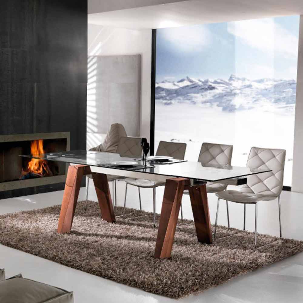 Mesa extensível de jantar em madeira maciça e vidro temperado Chade