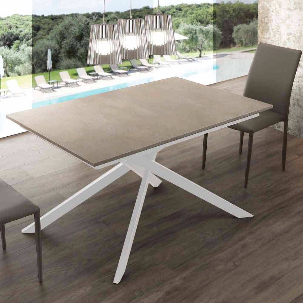 Mesa de jantar extensível Lecce com base cruzada