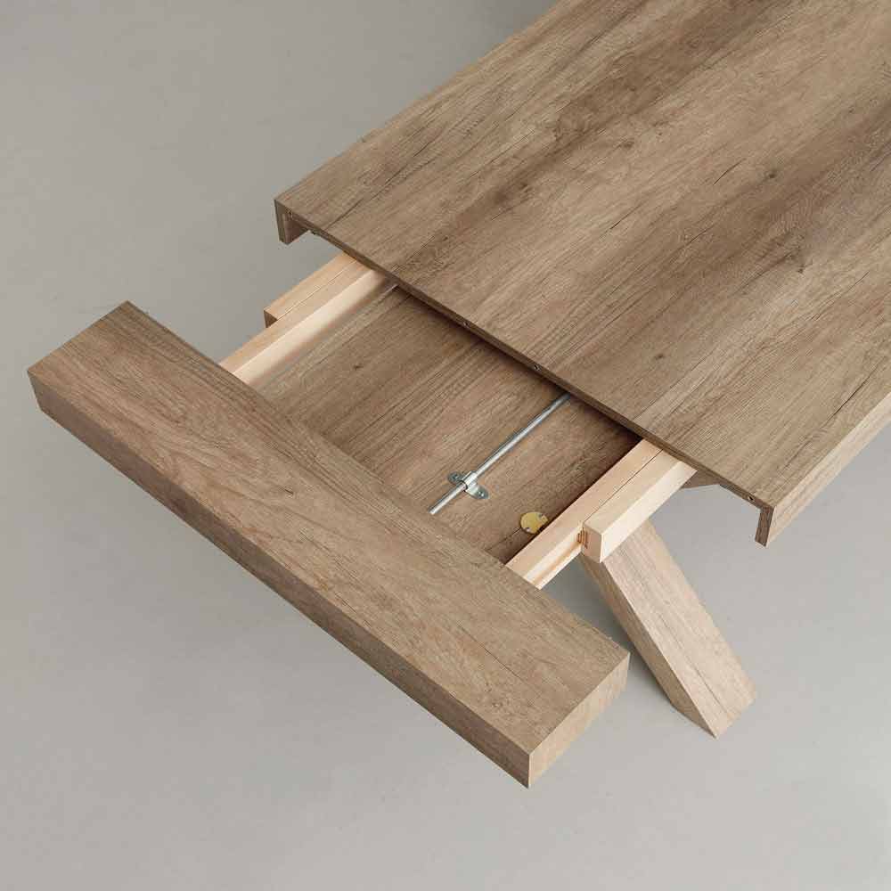 A peculiaridade desta mesa é o mecanismo dobrável para abrir suas extensões.