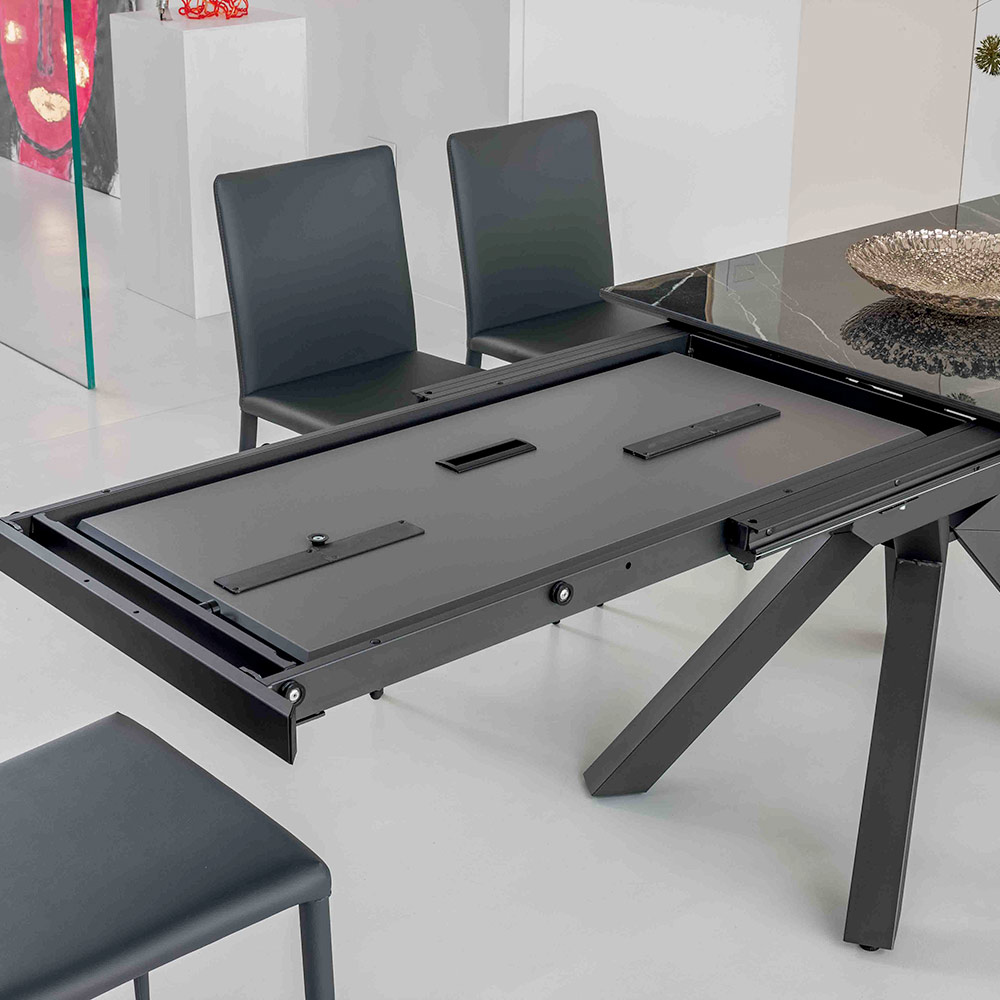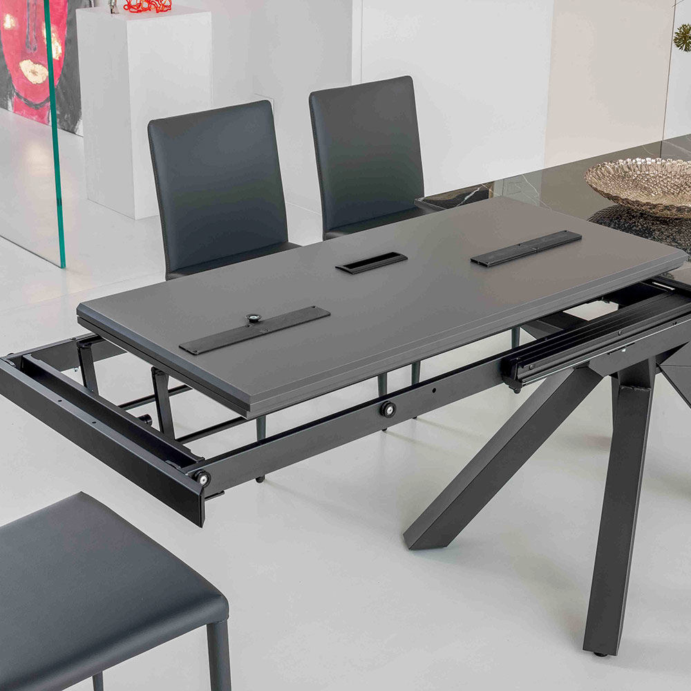 A mesa representa a síntese perfeita entre engenharia de ponta e design estético. Esta não é simplesmente uma mesa extensível, mas uma obra de arte funcional, projetada para aqueles que não querem comprometer entre estilo e espaço.