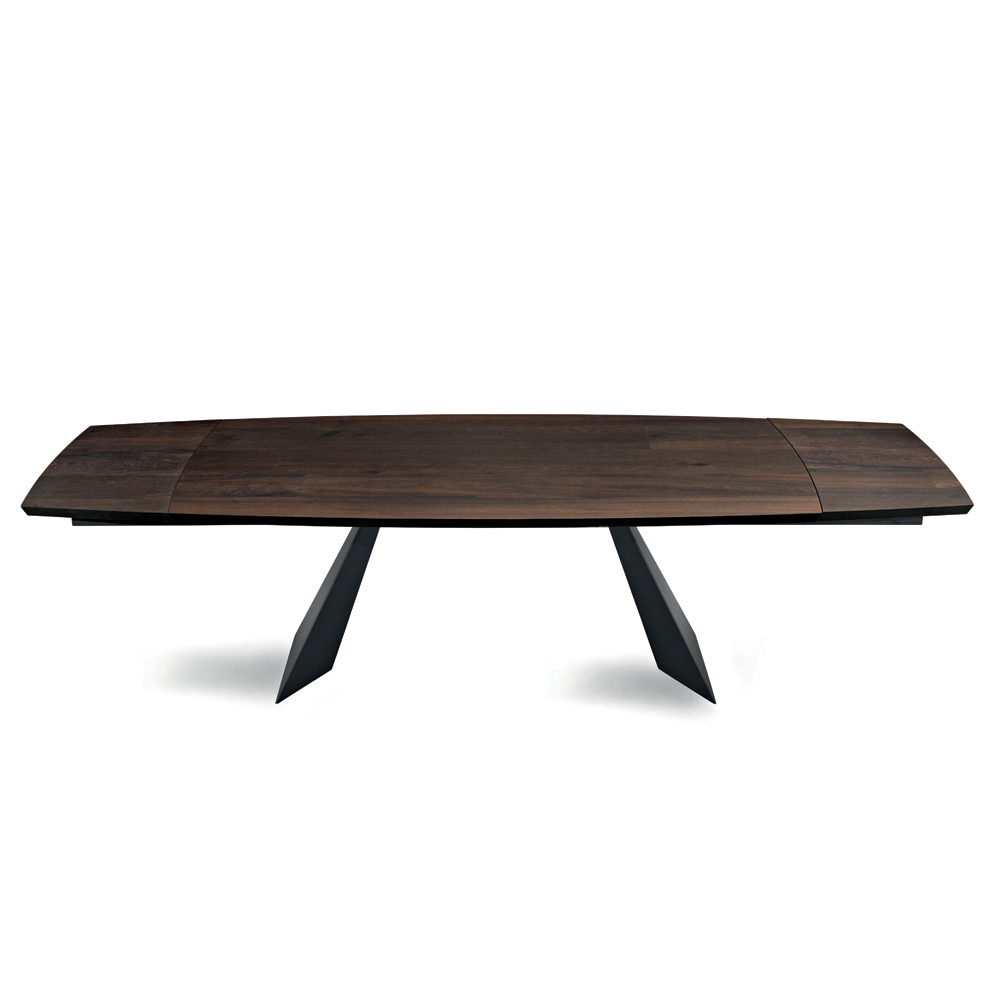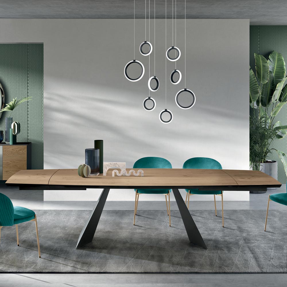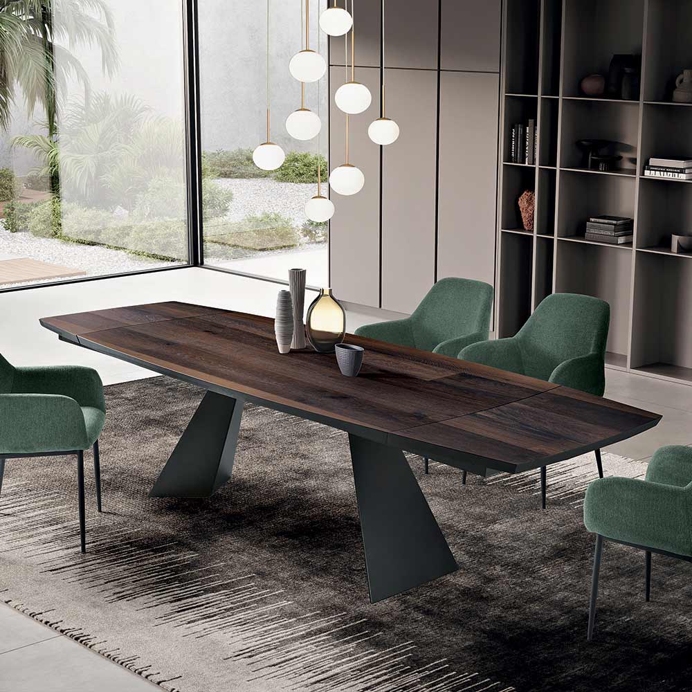 A mesa está disponível em versão extensível , ideal para se adaptar a diferentes necessidades diárias e para acomodar convidados em momentos de convívio. As extensões são separadas e não integradas ao tampo , podendo ser inseridas conforme a necessidade através dos trilhos deslizantes.