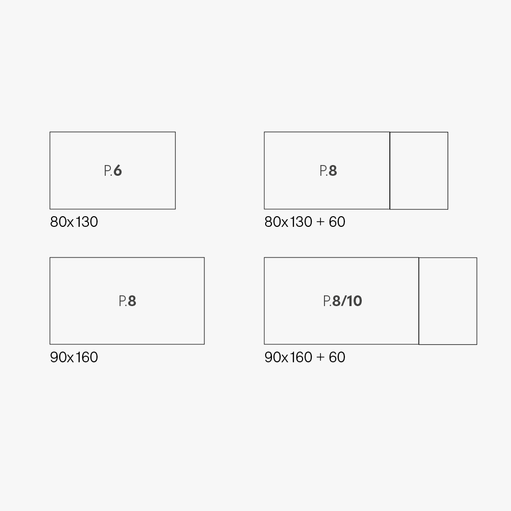 • comprimento 130/190 cm x profundidade 80 cm x altura 76,5 cm - 1 extensão de 60 cm