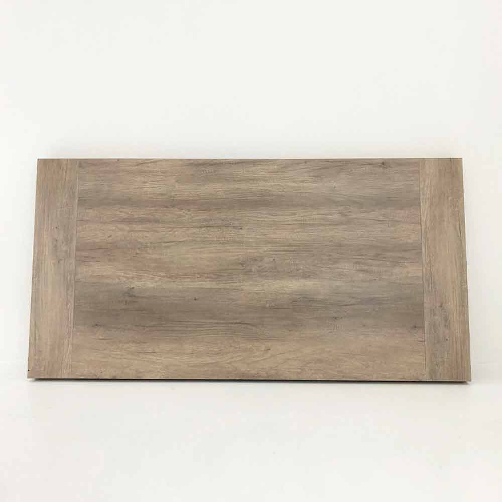Teramo é feito com uma base de metal pintada de preto e um tampo de madeira melamina.