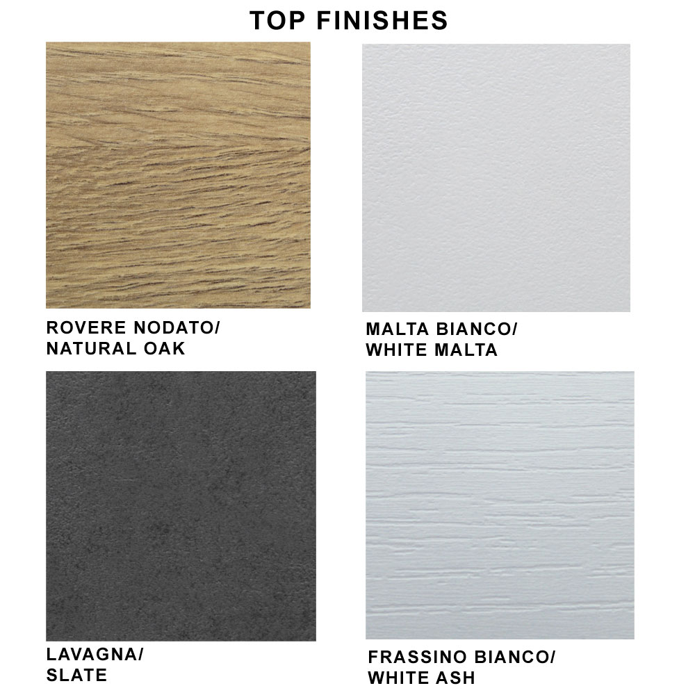 O tampo da mesa pode ser personalizado com diferentes acabamentos de amostra ou lacas RAL.